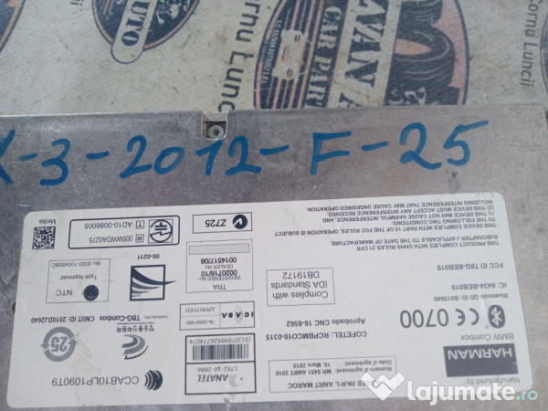 Modul bluetooth BMW X3 F25 2012. Cod(uri): 6434BEB019. Piesele comercializate sunt originale, provenite din dezmembrari. Dispunem de o gama larga de piese multimarca. Piesele sunt verificate inainte de a fi puse spre vanzare. In caz de neconformitate piesa se poate returna. Va rugam sa verificati disponibilitatea pieselor telefonic. Trimitem in tara prin curier. Marcă: BMW Producător: BMW