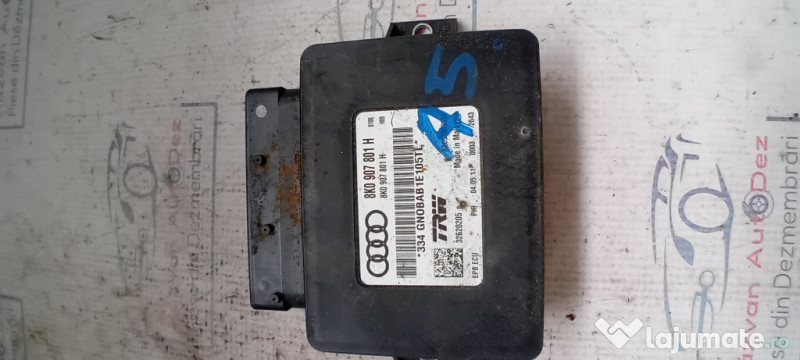Modul frana de mana Audi A5 2011. Cod(uri): 8K0907801H. Piesele comercializate sunt originale, provenite din dezmembrari. Dispunem de o gama larga de piese multimarca. Piesele sunt verificate inainte de a fi puse spre vanzare. In caz de neconformitate piesa se poate returna. Va rugam sa verificati disponibilitatea pieselor telefonic. Trimitem in tara prin curier. Marcă: Audi Producător: Audi