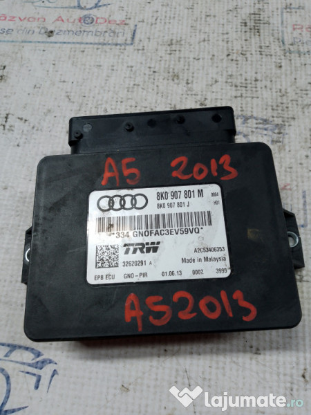 Modul frana de mana Audi A5 2013. Cod(uri): 8K0907801M. Piesele comercializate sunt originale, provenite din dezmembrari. Dispunem de o gama larga de piese multimarca. Piesele sunt verificate inainte de a fi puse spre vanzare. In caz de neconformitate piesa se poate returna. Va rugam sa verificati disponibilitatea pieselor telefonic. Trimitem in tara prin curier. Marcă: Audi Producător: Audi