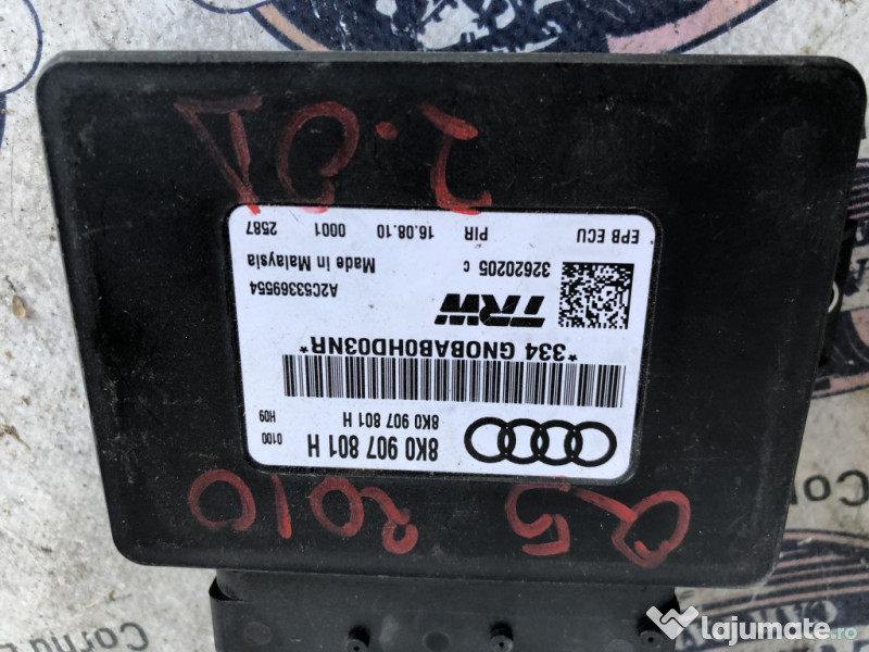 Modul frana de mana Audi Q5 2010. Cod(uri): 8K0907801H. Piesele comercializate sunt originale, provenite din dezmembrari. Dispunem de o gama larga de piese multimarca. Piesele sunt verificate inainte de a fi puse spre vanzare. In caz de neconformitate piesa se poate returna. Va rugam sa verificati disponibilitatea pieselor telefonic. Trimitem in tara prin curier. Marcă: Audi Producător: Audi