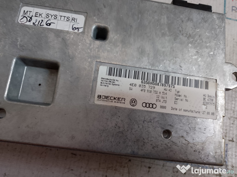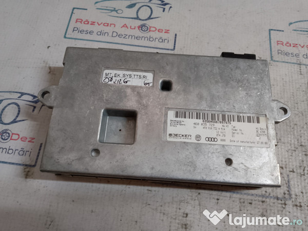 Modul MMI Audi A6 2008. Cod(uri): 4E0035729. Piesele comercializate sunt originale, provenite din dezmembrari. Dispunem de o gama larga de piese multimarca. Piesele sunt verificate inainte de a fi puse spre vanzare. In caz de neconformitate piesa se poate returna. Va rugam sa verificati disponibilitatea pieselor telefonic. Trimitem in tara prin curier. Marcă: Audi Producător: Audi