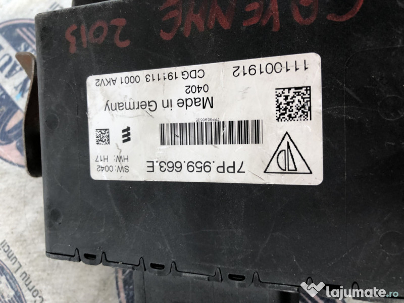 Modul Start-Stop Porsche Cayenne 2014. Cod(uri): 7PP959663E. Piesele comercializate sunt originale, provenite din dezmembrari. Dispunem de o gama larga de piese multimarca. Piesele sunt verificate inainte de a fi puse spre vanzare. In caz de neconformitate piesa se poate returna. Va rugam sa verificati disponibilitatea pieselor telefonic. Trimitem in tara prin curier. Marcă: Porsche Producător: Porsche