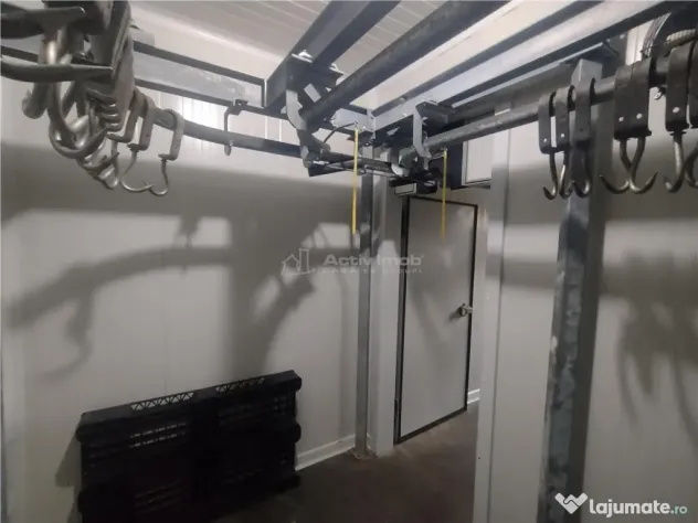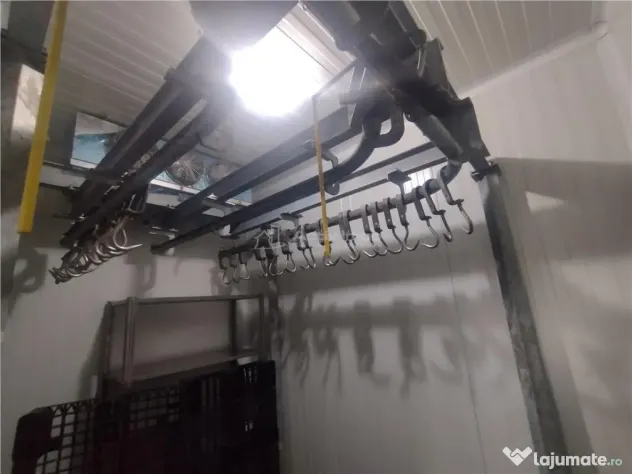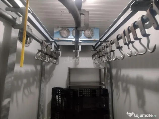 Camera frigorifica dotata cu linie de carcase si cantar aerian. Incaperi auxiliare: vestiar, baie de serviciu, spatiu pentru preparate si condimente