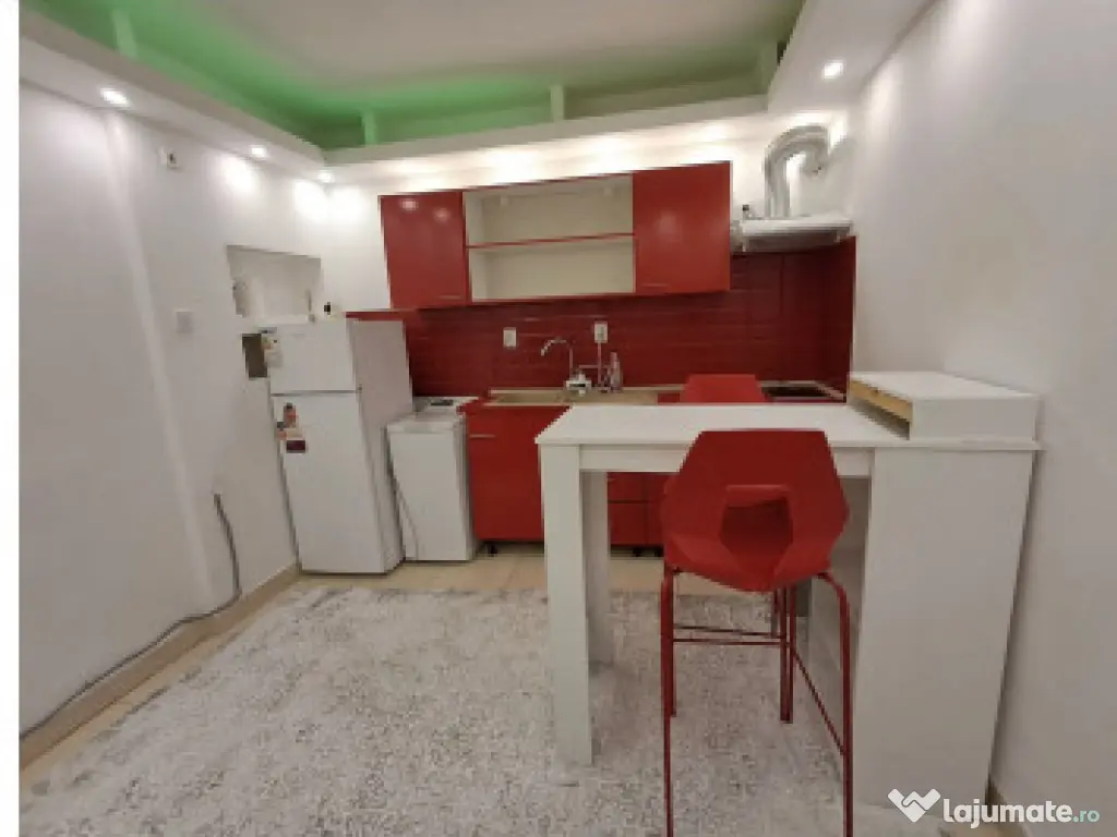 Studio central pozitionat pe una din strazile perpendiculare pe Moșilor, cu acces facil la statii de transport. Se află la demisolul unei clădiri de 3 etaje cu o curte interioară prin care se face accesul, zona liniștită,vecini liniștiți, spatii comune curate, este retrasă de la strada principală, departe de zgomotul transportului în comun. Este un demisol înalt cu lumina de zi , proaspăt renovat cu aspect modern si atractiv. Suprafața se desfășoară pe 27 mp în două camere. În prima cameră, prin care se face intrarea, se află o bucătărie openspace dotata cu mobilier, spatii de depozitare pentru alimente, frigider, plita electrică, unde se poate lua masa . În a doua cameră considerată dormitor sau camera de zi in funcție de necesitați, se află o canapea extensibilă care se poate transforma în pat, dulap de haine , măsuta de cafea și scaun de gaming . În aceasta parte se afla și dușul și baia. Locuința este racordată la electricitate si apă și se încălzește prin A.C cald/ rece. Apa se încălzește prin boiler. Studioul este potrivit ca suprafată si compartimentare pentru o persoana sau un cuplu . Această locuința se închiriază la prețul de 360 € lunar, se percepe prima plata pentru o lună, o lună în avans și o garanție. Confort: 1 Tip imobil: Bloc de apartamente Comision cumpărător: 50%
