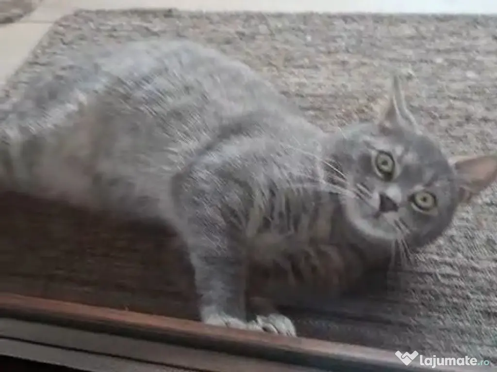 Motănel de 4 -5 luni, gri, își caută omul pe care să îl iubească și care să aibă grijă de el.