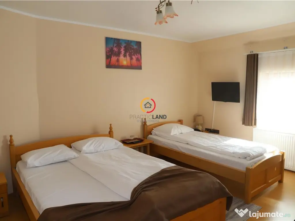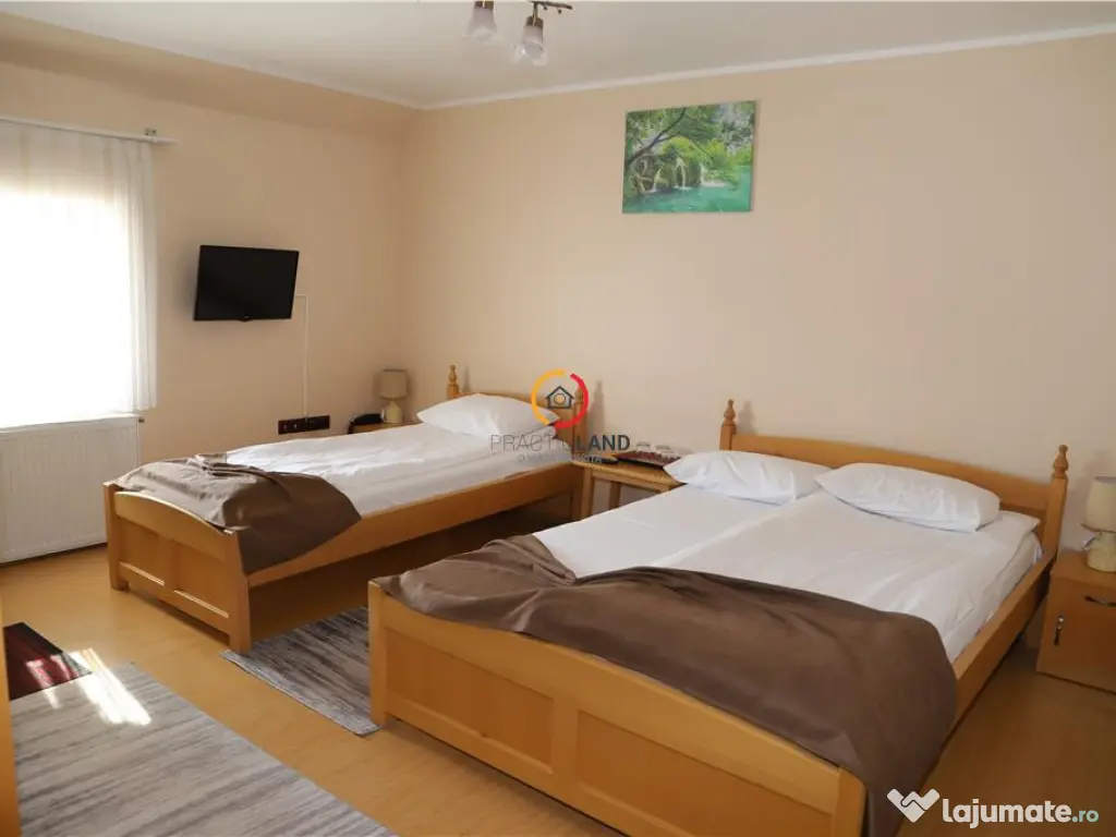 Imobil cu destinatia Motel Restaurant in Miercurea Ciuc Daca sunteti in cautarea unui loc in care sa va localizati afacerea in Miercurea Ciuc,pe drumul DN13A catre Targu Mures, acest imobil cu destinatia Motel Restaurant este potrivit pentru tine.In prezent activeaza ca si Motel Resaturant, P E M, cu 12 camere fiecare cu hol si baie proprie, sala de evenimente, sala de conferinte, bar, bucatarie, doua terase exterioare acoperite ale restaurantului, sala restaurant, parcare privata. Pe aceeasi proprietate cu Motelul, se afla o vila pe doua nivele, cu 6 camere, doua bai, bucatarie, camara, terasa, gradina, magazie, loc de parcare, acces separat, unde proprietarul motelului poate locui si poate coordona afacerea. Avantajele pe care le ofera aceasta proprietate: portofoliu de clienti existenti restaurant, sala de evenimente pentru 200 persoane vila de locuit in curtea motelului parcare privata Avantajele locatiei: situata la 7 km de centrul orasului Miercurea Ciuc la 150 km de Aeroportul International Targu Mures poti vizita obiective turistice din Miercurea Ciuc si imprejurimi cum ar fi, Manastirea franciscana Sumuleu Ciuc, ridicata in stil baroc cu statuia Sfintei Fecioare Maria cu Pruncul Isus considerata cel mai mare de acest tip din lume.Cetatea Miko care gazduieste Muzeul Secuiesc al Ciucului. Cumparatorul beneficieaza de consultanta gratuita din partea Agentiei, i se pun la dispozitie toate actele proprietatii, poate viziona proprietatea cu programare telefonica prealabila, nu datoreaza comision Agentiei. Prin mandatul expres la proprietarului, reprezentam aceasta proprietate exclusiv, care garanteaza accesul la toate informatiile, un serviciu de calitate,fara interferente din partea tertilor.Din acest motiv, va rugam sa nu deranjati proprietarul, ocupantii proprietatii sau vecinii.Va multumim foarte mult pentru intelegere! Daca sunteti agent imobiliar si aveti un client pentru aceasta proprietate, sunati-ne, vom colabora cu placere! An finalizare construcție: 2015 Stadiu construcţie: Finalizat Număr încăperi: 20 Posibilitate parcare: Da Nr. locuri parcare: 20+