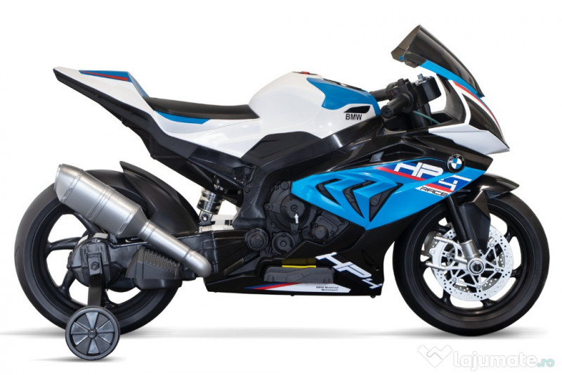Benficiati de GARANTIE 24 Luni Transport GRATUIT Pentru comenzi si info contactati-ne 0729189471 Motocicleta electrica BMW HP4 2x 45W 12V cu roti moi, scaun tapitat Scaun tapitat cu piele ecologica, confortabil pentru 1 copil Roti ajutatoare pentru o siguranta sporita a copilului Rotile ajutatoare se pot demonta 2 motoare electrice de 45W fiecare Echipata cu Baterie 12V 7Ah Roti MOI din Spuma polimer EVA Scaun din plastic, confortabil pentru copil Cadru solid din metal Furca metalica Krick Efecte luminoase actionate din buton Efecte sonore actionate din buton Produsul include INCARCATOR Sistem de iluminat cu LED Greutate proprie 17 Kg Greutate total admisa 47 kg Produs recomanda pentru copii 3 - 9 ani Dimensiunile produsului montat 118 x 42 x 72 cm Puteti cumpara acest produs in RATE, fara dobanda, cu CARD de cumparaturi de la banci partenere precum: Raiffeisen / Star BT / BCR / BRD Finance / Alpha Bank /First Bank. Pentru comenzi si info contactati-ne 0729189471 SAU IN RATE CU DOBANDA PRIN TBI PAY.