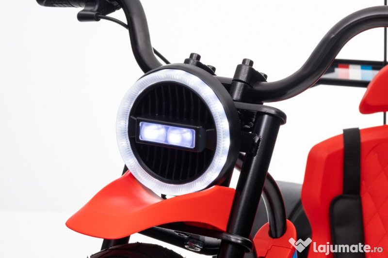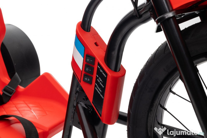 Benficiati de GARANTIE 24 Luni Transport GRATUIT Pentru comenzi si info contactati-ne 0729189471 Motocicleta electrica Kinderauto Drift-Trike, 2x250W, 24V 10Ah Motocicleta are 2 motoare mari pe spate de putere 250W si 25000 Rpm Capacitatea sa maximă de încărcare este de aproximativ 70 kg 2 Baterii de 12V 10Ah conectate in serie insumand 24V Scaun sport reglabil, cu centura de siguranta Sistem de iluminat cu LED Pornire/oprire sistem alimentare 24V din buton Comutator pentru schimbare sensului de mers inainte/inapoi Comutator pentru selectarea vitezei de mers (high/low speed) Înălțimea maximă a utilizatorului: 150cm Roti moi din cauciuc, punte fata Roti din plastic, punte spate (aderenta redusa, ajuta pentru derapaj controlat) Viteza maxima de 13KM / h Dimensiune: 137 x 77 x 64.5CM Puteti cumpara acest produs in RATE, fara dobanda, cu CARD de cumparaturi de la banci partenere precum: Raiffeisen / Star BT / BCR / BRD Finance / Alpha Bank /First Bank. Pentru comenzi si info contactati-ne 0729189471 SAU IN RATE CU DOBANDA PRIN TBI PAY.
