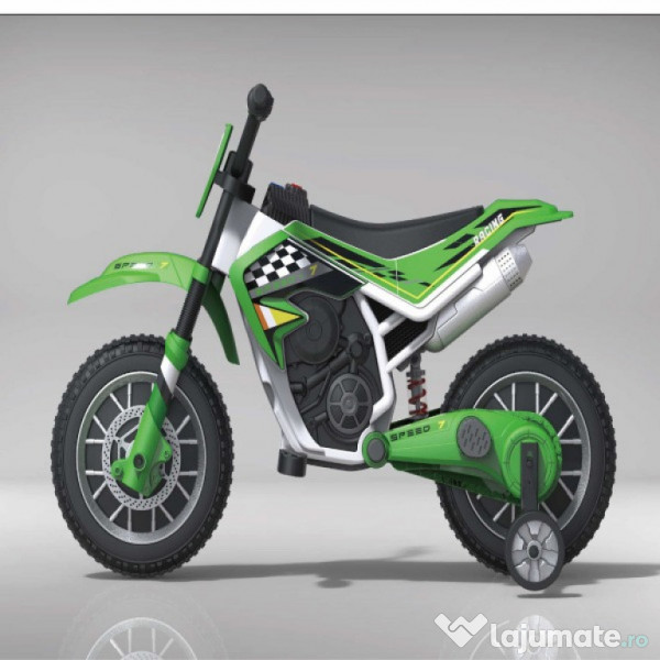 Benficiati de GARANTIE 24 Luni Transport GRATUIT Pentru comenzi si info contactati-ne O729.189.471 Motocicleta electrica pentru copii Kinderauto BJH022 2x35W 12V Roti ajutatoare pentru o siguranta sporita a copilului  Roti din plastic 2 Motoare electric de putere 35W fiecare, la tensiune 12V Echipata cu Baterie 12V 4.5Ah  Music player Mp3 cu butoane pentru efecte sonore, claxon si muzica Amortizor fata / spate Comutator pentru selectare viteza High / Low speed  Produsul include INCARCATOR   Greutate proprie 10 Kg  Greutate total admisa 40 Kg  Produs recomanda pentru copil 36- 72 Luni Dimensiunile produsul montat 107 x 52 x 70 cm Puteti cumpara acest produs in RATE, fara dobanda, cu CARD de cumparaturi de la banci partenere precum: Raiffeisen / Star BT / BCR / BRD Finance / Alpha Bank /First Bank. Pentru comenzi si info contactati-ne O729.189.471 Mai puteti cumpara IN RATE CU DOBANDA PRIN TBI PAY sau Mokka