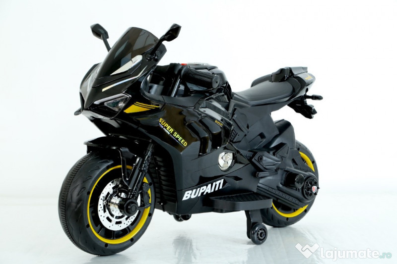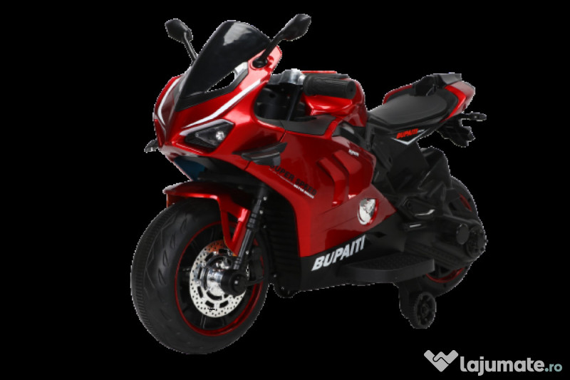 Benficiati de GARANTIE 24 Luni Transport GRATUIT Pentru comenzi si info contactati-ne 0729189471 Motocicleta electrica pt. copii, Kinderauto BDQ888 2x 35W 12V Roti moi din cauciuc EVA, silentioase si confortabile Scaun din plastic, confortabil pentru copil Buton pentru pornire / oprire sistem alimentare Acceleratie manuala, pozitiona la piciorul drept Comutator pentru schimbarea sensului de mers inainta/inapoi Music player cu multiple functii si conexiune Mp3 prin Bluetooth, Stick USB Echipat cu 2 motore electrice de 35W, la tensiune 12V Roti ajutatoare pentru o siguranta sporita a copilului Rotile ajutatoare se pot demonta Echipata cu baterie reincarcabila 12V 4Ah Efecte luminoase actionate din buton Efecte sonore actionate din buton Produsul include INCARCATOR 12V 1Ah Greutate proprie 12 Kg Greutate total admisa 42 kg Produs recomanda pentru copil 3 - 6 ani Dimensiunile produsul montat 105 x 43 x 66 cm Puteti cumpara acest produs in RATE, fara dobanda, cu CARD de cumparaturi de la banci partenere precum: Raiffeisen / Star BT / BCR / BRD Finance / Alpha Bank /First Bank. Pentru comenzi si info contactati-ne 0729189471 SAU IN RATE CU DOBANDA PRIN TBI PAY.