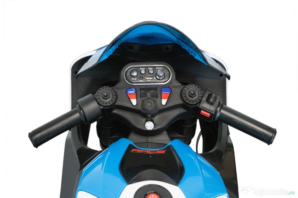 Benficiati de GARANTIE 24 Luni Transport GRATUIT Pentru comenzi si info contactati-ne 0729189471 Specificatii motocicleta electrica BMW HP4 echipat Premium Scaun tapitat cu piele ecologica, confortabil pentru 1 copil Roti ajutatoare pentru o siguranta sporita a copilului Rotile ajutatoare se pot demonta 2 motoare electrice de 45W fiecare Echipata cu Baterie 12V 7Ah Roti MOI din Spuma polimer EVA Scaun din plastic, confortabil pentru copil Cadru solid din metal Furca metalica Krick Efecte luminoase actionate din buton Efecte sonore actionate din buton Produsul include INCARCATOR Sistem de iluminat cu LED Greutate proprie 17 Kg Greutate total admisa 47 kg Produs recomanda pentru copil 3 - 9 ani Dimensiunile produsul montat 118 x 42 x 72 cm Puteti cumpara acest produs in RATE, fara dobanda, cu CARD de cumparaturi de la banci partenere precum: Raiffeisen / Star BT / BCR / BRD Finance / Alpha Bank /First Bank. Pentru comenzi si info contactati-ne 0729189471 SAU IN RATE CU DOBANDA PRIN TBI PAY.