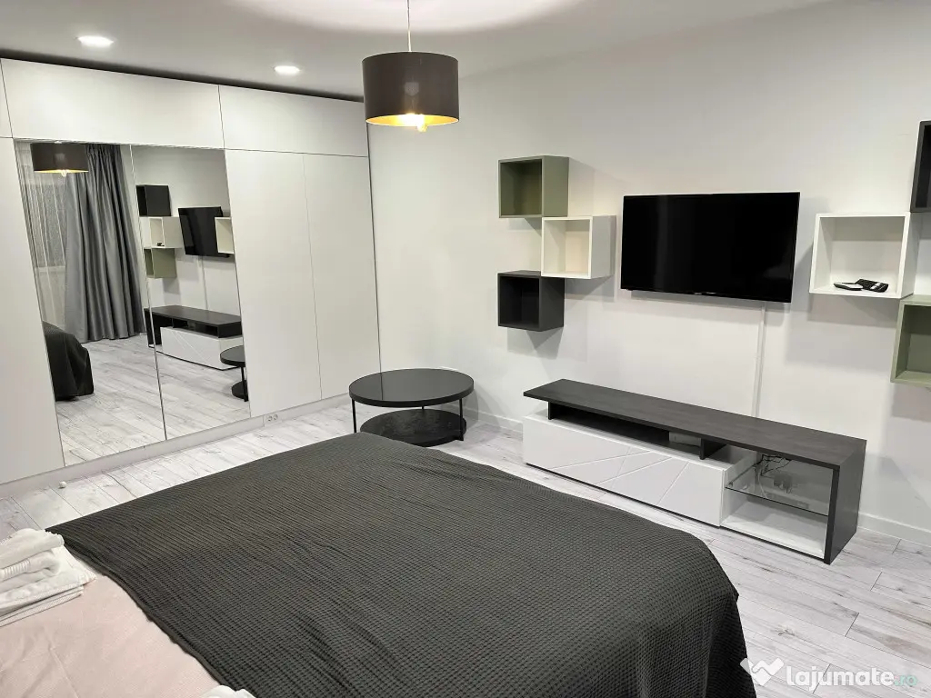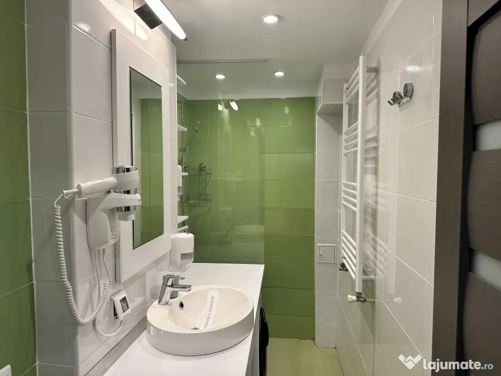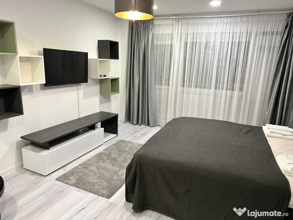 Se oferă spre închiriere garsonieră modernă, cu o suprafață de 40 mp, ideală pentru o persoană sau un cuplu. Locuința este complet mobilată și utilată, pregătită pentru mutare imediată. Etajul 4 din 8. Garsoniera dispune de bucătărie închisă, baie cu duș tip built-in, balcon și este dotată cu toate facilitățile necesare pentru confortul zilnic: tamplarie termopan, aer condiționat, mașină de spălat rufe, combina frigorifica, aragaz&cuptor pe gaz și TV smart. Imobilul este situat pe strada Anastasie Panu nr. 15, într-o zonă liniștită, cu acces rapid către mijloacele de transport. Stația de metrou Timpuri Noi se află la doar 7 minute de mers pe jos. Preț: 480 Euro/lună (ușor negociabil). Confort: 1 Tip imobil: Bloc de apartamente Comision cumpărător: 50%