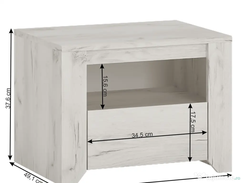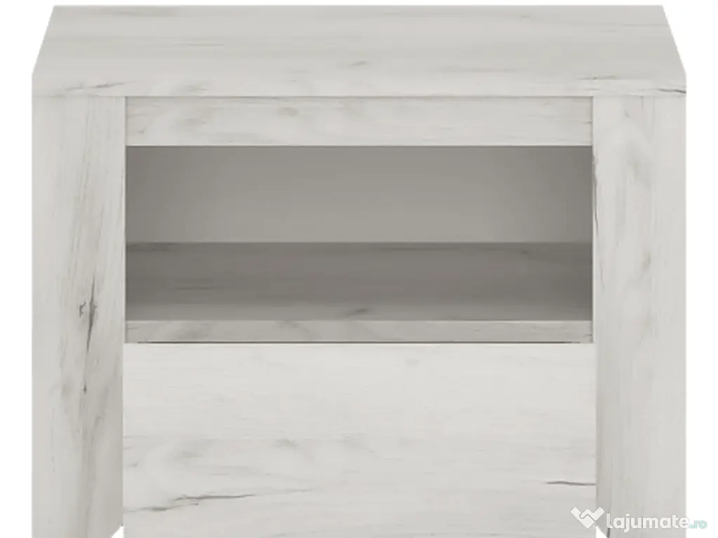 Noptiera din PAL melaminat alb cu vinisoare gri.