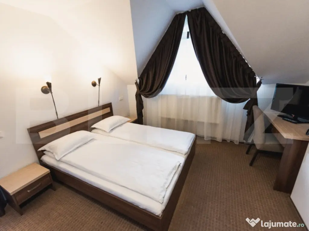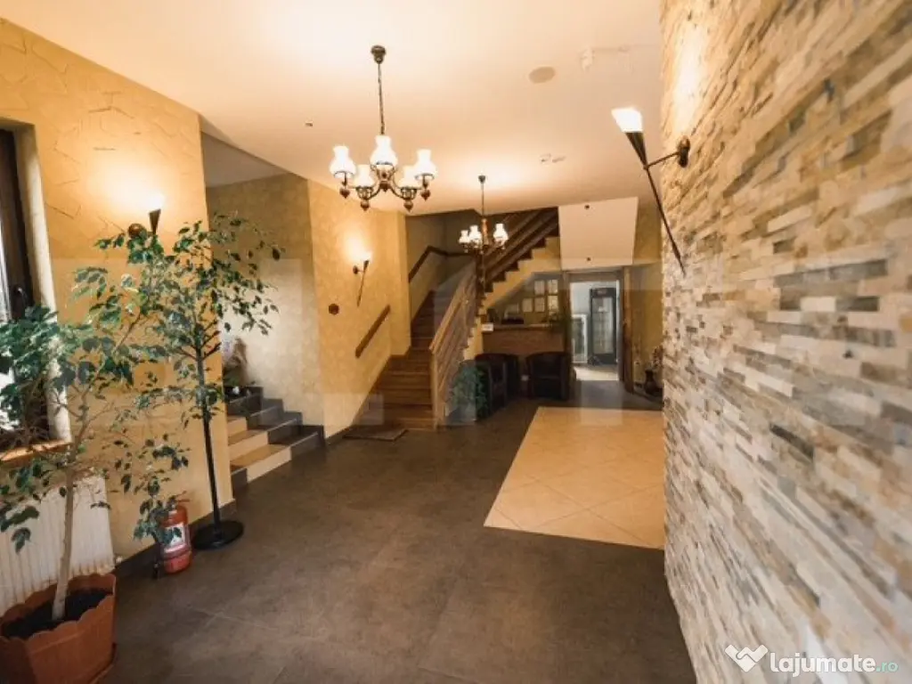 Descoperă oportunitatea de a deține o afacere de succes într-una dintre cele mai fermecătoare zone ale României! Clasificată la 4 margarete, este situată în inima Maramureșului, la Vișeu de Jos. Aici, tradiția se îmbină armonios cu eleganța și confortul modern. Locație de vis Poziționată strategic într-o zonă montană, rurală și istorică, pensiunea se află în apropierea unor atracții turistice de renume: Mocănița pe Valea Vaserului (10 minute) – o experiență inconfundabilă. Mănăstirea Bârsana, Cascada Cailor, Pârtia Borșa – accesibilitate excelentă pentru excursii. Cimitirul Vesel din Săpânța, Muzeul Satului Maramureșean – autenticul Maramureș te așteaptă! Detalii despre proprietate Teren generos: 1 hectar, cu posibilitate de extindere. Clădire modernă: 600 m², construită în 2016, reabilitată în 2024, în stil clasic cu accente rustice și moderne. Spații de cazare: 12 camere elegante (5 duble, 6 triple, 1 single), fiecare cu baie proprie. Capacitate totală: 30 de persoane. Restaurant și lounge: Zonă restaurant de 180 m² (40 locuri la mese). Lounge cu șemineu, bar și loc de joacă pentru copii. Ideal pentru evenimente restrânse (până la 50 persoane). Facilități exterioare: Foișor rustic cu 60-70 locuri, 2 grătare, cuptor tradițional. Loc de joacă, parcări generoase (20+ mașini). Spațiu verde amplu, ideal pentru amenajări suplimentare: zonă SPA, terenuri de sport sau chiar o pârtie privată. Informații suplimentare Licențe și autorizații: Toate documentele necesare sunt la zi. Angajați: 3 persoane, fără impact esențial asupra continuității afacerii. Branding activ: Website propriu, prezență pe rețele sociale. Această pensiune oferă o oportunitate unică de a investi într-o afacere matură, cu perspective de creștere și extindere. Fie că dorești să menții tradiția maramureșeană, fie că vrei să dezvolți noi proiecte pe un teren generos. Contactează-ne pentru mai multe informații și pentru a programa o vizionare. O afacere pregătită pentru viitor te așteaptă să devii parte din povestea ei! Cod ofertă / ID BLITZ: P138409 Id intern: P138409 Stadiu construcţie: Finalizat Număr încăperi: 12