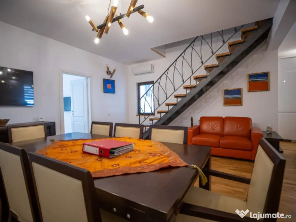 Agentia Experți Imobiliari are plăcerea de a vă prezenta, în exclusivitate, un apartament cu adevărat unic, situat ultracentral, acolo unde orașul pulsează de viață, iar marea îți zâmbește în fiecare dimineață. Imaginați-vă trezindu-vă într-unul dintre cele 4 dormitoare spațioase, cu lumina naturală strecurându-se printre perdele. Ziua începe cu o cafea savurată pe terasa cu vedere directă la mare – un tablou în mișcare care se schimbă în fiecare zi. Interiorul este o îmbinare perfectă între confort și rafinament: un living generos, un dining elegant pentru cinele în familie sau cu prietenii, o bucătărie bine organizată, două dressinguri încăpătoare și patru grupuri sanitare moderne, fiecare atent gândit pentru a-ți oferi intimitate și confort. Cele două terase sunt locurile unde poveștile de seară se scriu natural, iar momentele de liniște devin ritual. ????Apartamentul se află într-una dintre cele mai râvnite zone ale orașului – ultracentral, la doar câțiva pași de toate punctele de interes urban, dar suficient de sus încât să simți briza mării și liniștea ei. ???? Un spațiu care nu se vinde – se oferă celor care știu să-l aprecieze. Pentru mai multe informații despre acest anunț imobiliar sau pentru a programa o vizionare, nu ezitați să ne contactați. Suntem aici pentru a vă ajuta să găsiți locuința perfectă pentru stilul dumneavoastră de viață! E.4(P31370) Id intern: P31370 Confort: 1 Tip imobil: Casă/Vilă Număr Băi: 4