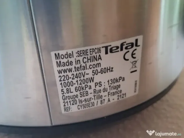 Vand oala sub presiune,electrica,firma Tefal,One Pot Cy 505,EEO -5,8l care dispune de 25 programe functionale ,de pastrare la cald temp. si cu timp de ajustare. Este folosita de max.4 ori si este intr-o stare impecabila.