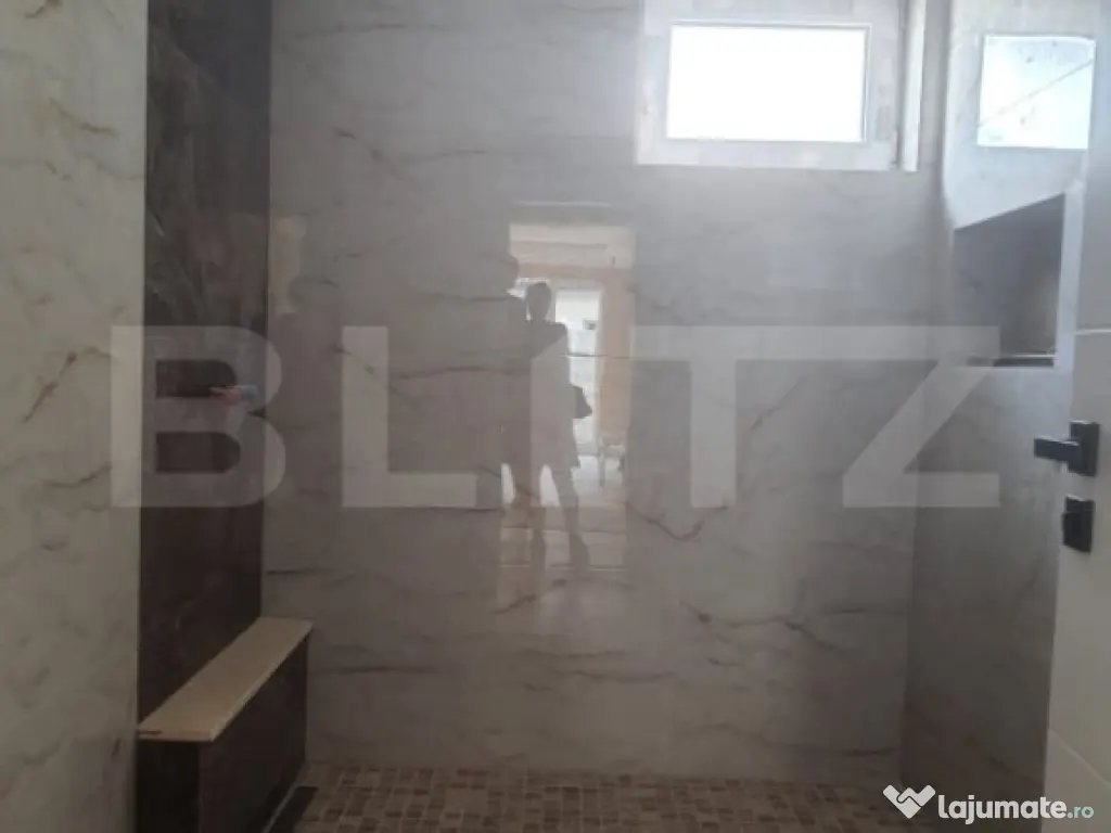 Suprafața utila 200m2 + 48m2 terase , suprafața teren 660 m2 - zidarie exterioara - caramida Wienerberger porotherm PTH 30 robust - zidarie interioara - caramida Wienerberger porotherm PTH 25 - acoperis- tigla bramac skandia beton , jgheab tabla 120mm diametru . - izolatie intre etaj si pod - spuma poliuretanica 15cm grosime - izolatie exterioara - polistiren 10cm eps 80 , adeziv baumit duocontact - ferestre/usi -tamplarie PVC SALAMANDER 7 camere , alb, 3 sticle , 4 anotimpuri , feronerie ROTO NP - instalatie incalzire- pardoseala, parter - purmo / etaj- uponor minitech prevazuta cu termostat in fiecare incapere - instalatie sanitara - vas wc/bideu , conducte, rigole-TECEfloor - tavan - placa gips-carton12,5 mm grosime - incalzire auxiliara - semineu KAWMET W16 14,7 KW (focar fonta) , cos de fum profesional Utilități : apa , canalizare , curent (trifazic) Compartimentare : *Parter : hol acces + casa scării , baie , Bucătărie + cămara , living + dining , dormitor + dressing , camera tehnica , terasa *Etaj : 2 dormitoare +dressing’uri , 1 dormitor, 1 baie , 1terasa , hol +casa scării. Si casa si zona, sunt foarte frumoase, merita vazute.