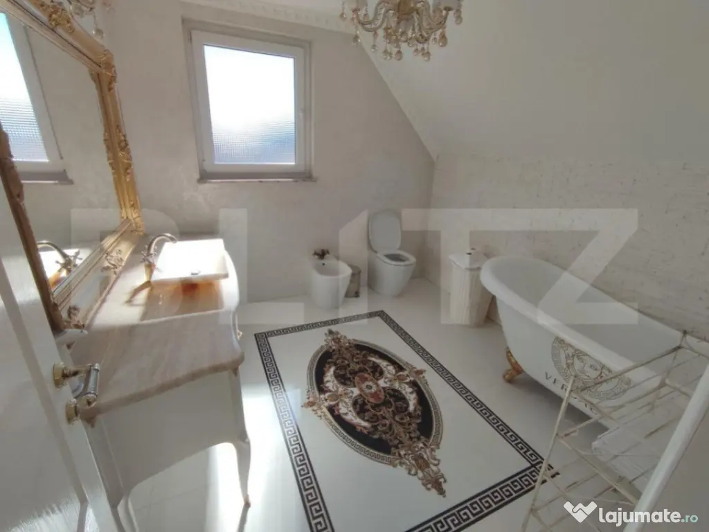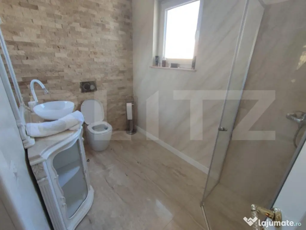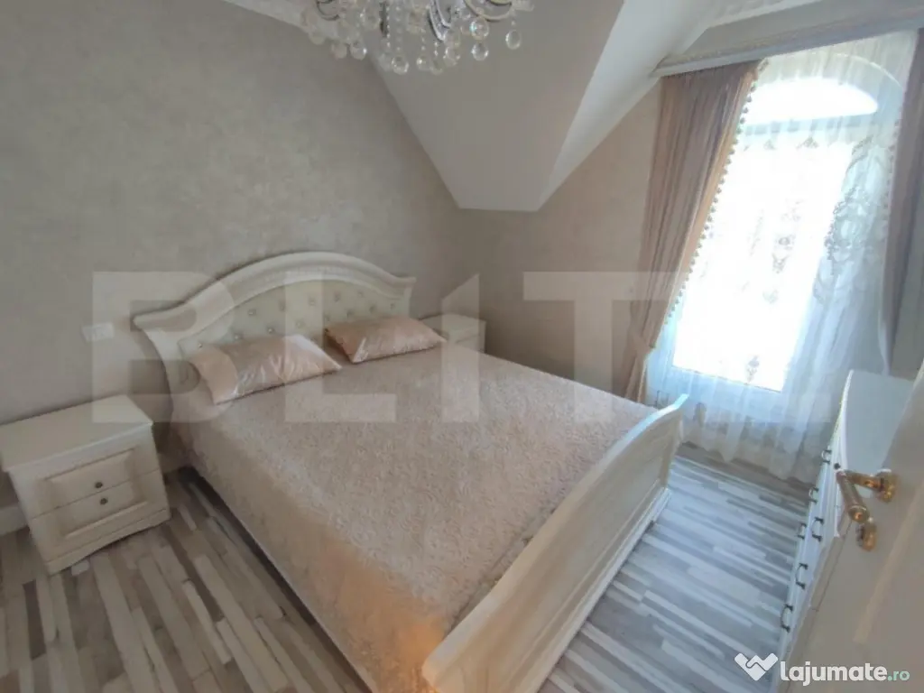 Blitz vă oferă două case unice situate într-o curte centrală în Rădăuți. Această proprietate oferă o oportunitate rară de a trăi într-un mediu urban, dar cu beneficiile unei atmosfere liniștite și private. Primul lucru care vă va impresiona este frumusețea și eleganța acestei curți. Aleile pavate cu dale conduc spre cele două case, flancate de un spațiu verde bine amenajat și îngrijit, cu o mică dar cochetă suprafață de apă si o fântână arteziană. Accesul este ușor și securizat de o poartă electrică, oferindu-vă confort și siguranță. La parterul primei case veți găsi un living spațios, perfect pentru relaxare și socializare. Aici este și un dormitor confortabil, ideal pentru oaspeți sau membrii familiei. Baia și bucătăria sunt complet echipate și modern amenajate, îmbinând utilitatea cu stilul. Există și un birou, care momentan funcționează ca un frumos salon de coafură pentru cei care doresc să își înceapă propria afacere în domeniu. Există si spațiu suplimentar de depozitare in beci. La etaj vă așteaptă trei dormitoare spațioase, o baie elegantă și un dressing generos. Totodată, casa beneficiază de spațiu de depozitare si în pod. A doua casă este la fel de impresionantă. La parter, veți găsi un living luminos, o bucătărie modernă și o baie elegantă. Există și un garaj, oferind comoditate și siguranță pentru mașina dvs. La etaj, două dormitoare confortabile, o baie și un dressing vă așteaptă să le transformați în spațiul personalizat al familiei dvs. În plus, ambele case beneficiază de o bucătărie de serviciu care deserveste o terasa frumoasa la etajul cladirii. Acest spațiu este perfect pentru petreceri în aer liber sau relaxare în timpul serilor călduroase de vară. Imobilele se vând mobilate si utilate, utilitățile sunt complet instalate, iar încălzirea se face prin centrale pe gaz, asigurându-vă confortul pe tot parcursul anului. Și pentru siguranță adăugată, ambele case sunt dotate cu un sistem de supraveghere video. Cu toate aceste facilități și amenajări de lux, această proprietate reprezintă o oportunitate unică pe piața imobiliară din Rădăuți. Nu ezitați să programați o vizionare și să vă convingeți singuri de frumusețea și potențialul acestei proprietăți extraordinare. Cod ofertă / ID BLITZ: P102141 Id intern: P102141 Număr niveluri imobil: 1 Număr Băi: 2 Nr. locuri parcare: 3 Curent Apă Canalizare Gaz