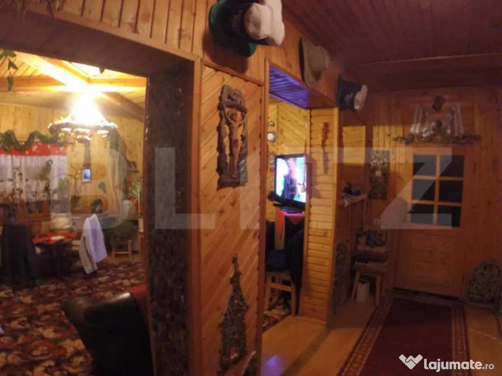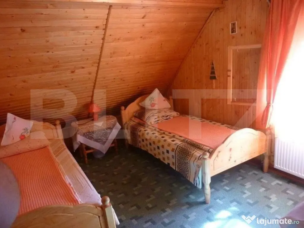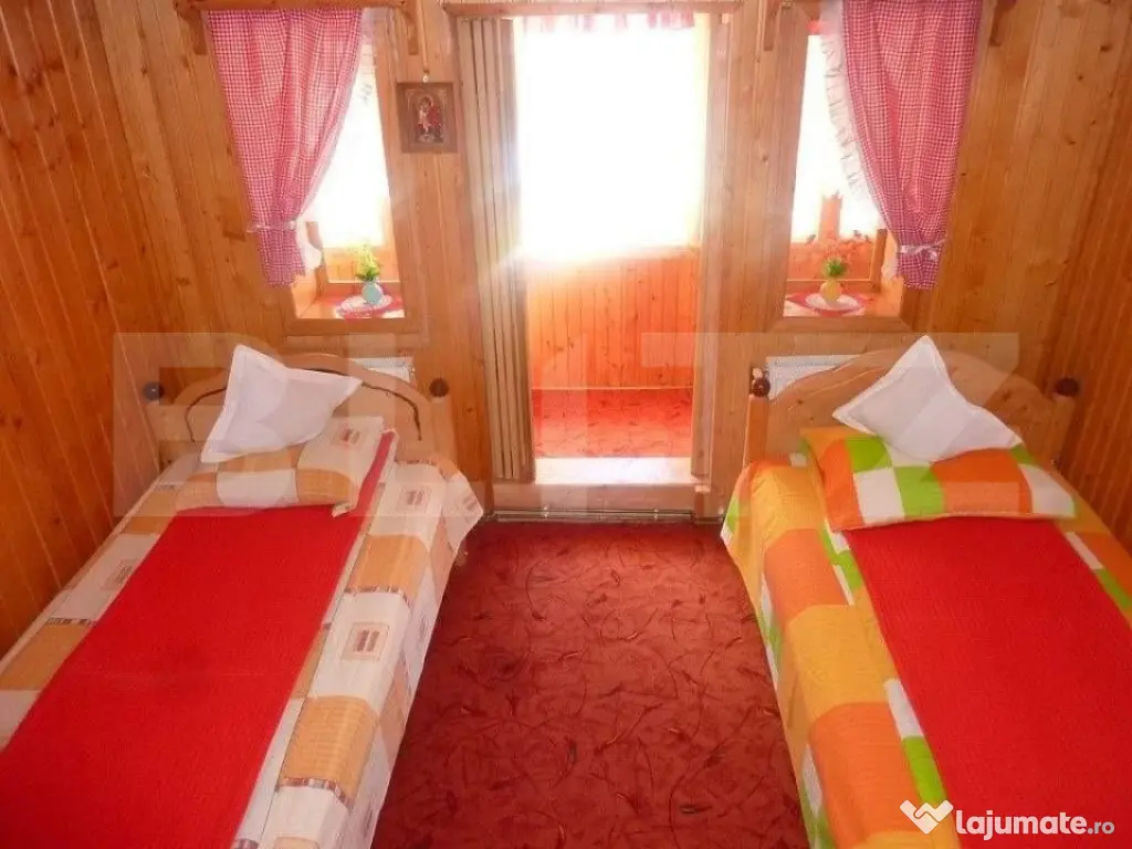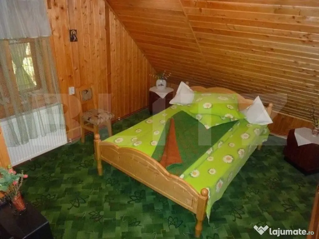 Blitz vă oferă spre vânzare o cabană spațioasă într-o zona pitorească. Clădirea cu 2 nivele are o suprafață utilă de aproximativ 180 mp, fiind compartimentată astfel: - Terenul este în mărime de 32.000 metri pătrați, având deschidere aproximativ 60 de metri la DN 174. Spre nord e mărginit de râul Neagra. - Casa este construită din lemn, cu amprenta la sol aprox. 150 metri pătrați. - În corpul principal avem 4 dormitoare, o sufragerie, o bucătărie, 2 grupuri sanitare și camera tehnică. - Corpului principal i-au fost adăugate două camere cu grup sanitar propriu și un salon cu bucătărie și grup sanitar. - Ca anexe avem un atelier de lucru, o magazie de depozitare, un foișor, un loc pentru grătar, două mese din lemn și un garaj dublu. - Casa este locuibilă, încălzită de centrală cu lemne, iar apa este trasă prin hidrofor din fântâna proprie. Va asteptam la vizionare! Cod ofertă / ID BLITZ: P12446 Id intern: P12446 Număr niveluri imobil: 1 Număr Băi: 3 Nr. locuri parcare: 2