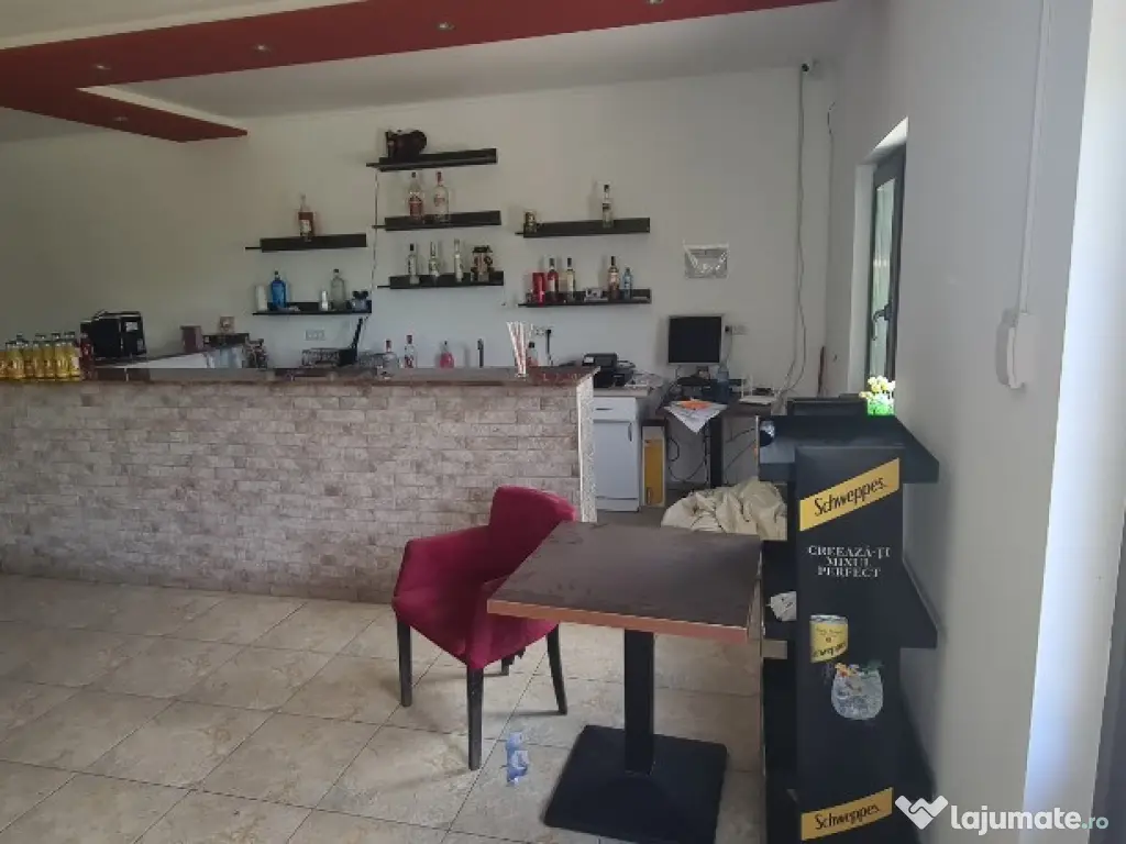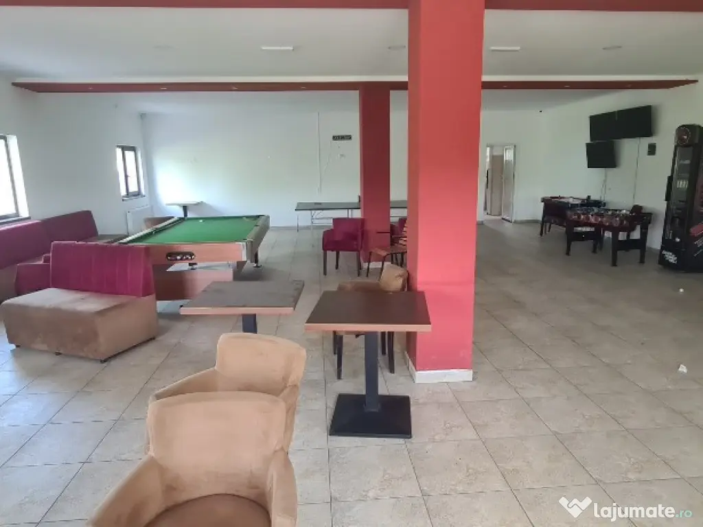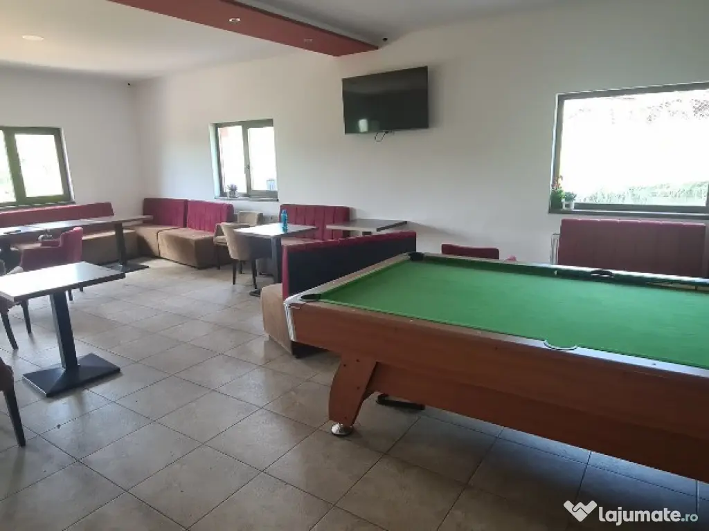 Bar/Cafenea cu terasă – zonă de servire, sală de biliard, grup sanitar, spațiu de relaxare în aer liber