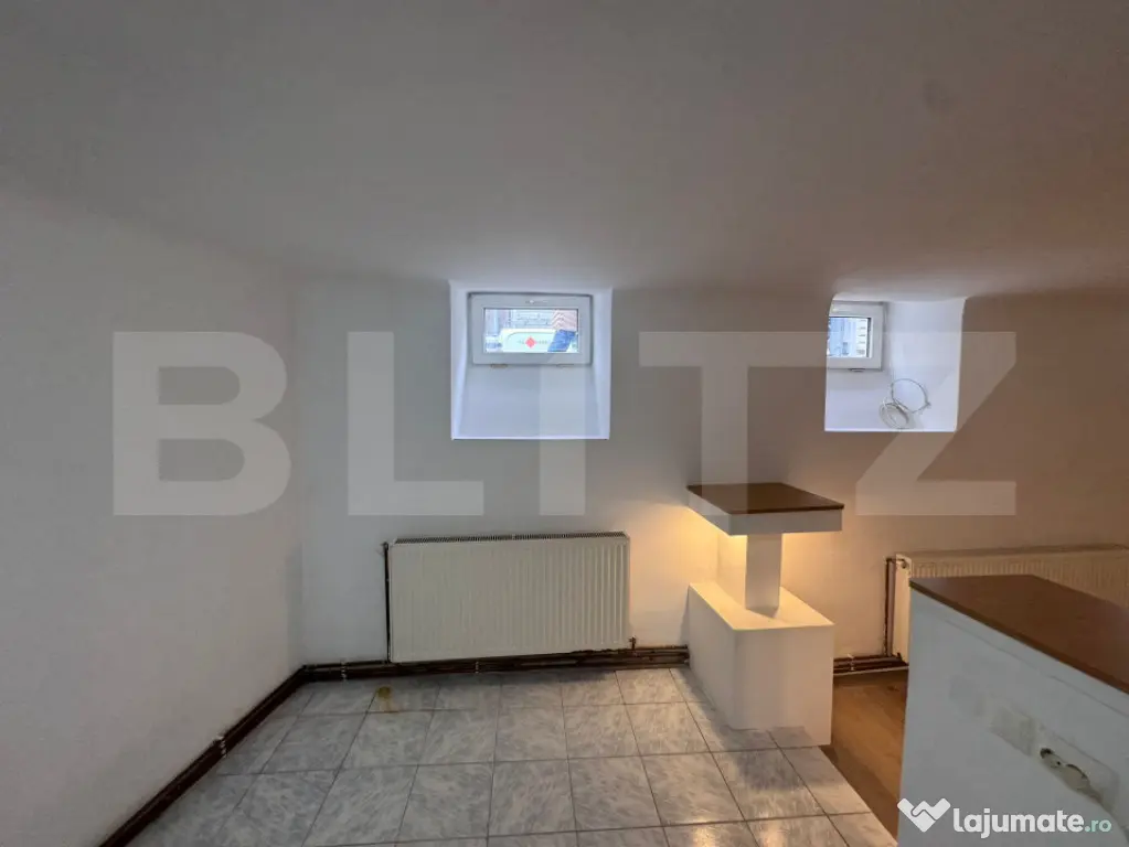 Blitz va prezinta un apartament cu suprafață utilă de 59 mp, complet renovat recent, configurat eficient în două camere, bucătărie separată, baie și cămară pentru depozitare — o proprietate potrivită în special pentru activități profesionale sau investiție. Poziționat la demisol înalt, spațiul beneficiază de compartimentare practică și costuri reduse de exploatare, fiind ideal pentru birou, cabinet, sediu firmă, activități de consultanță sau servicii conexe.