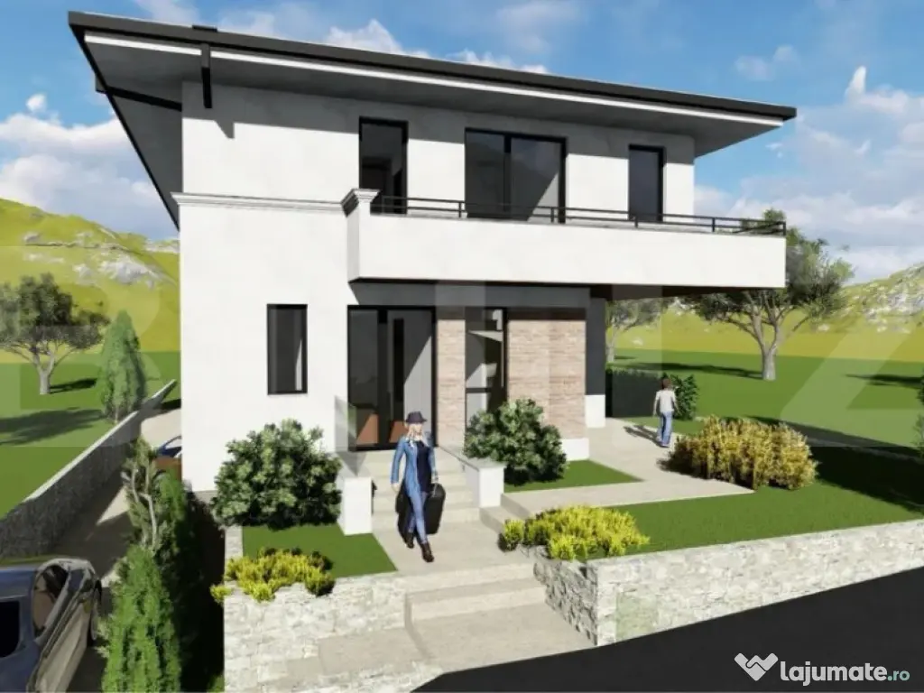 Blitz va propune o oportunitate rară: casă tip duplex aflată în fază de proiect, oferind viitorului proprietar posibilitatea de a aduce modificări și personalizări încă din faza de construcție. Situată într-o zonă exclusiv rezidențială din Dâmbul Rotund, cu străzi asfaltate și acces rapid spre centrul orașului, proprietatea beneficiază de o panoramă spectaculoasă asupra orașului. Imobilul face parte dintr-un ansamblu modern de case și este construit la cele mai noi standarde NZEB (Nearly Zero Energy Building), ceea ce înseamnă un consum de energie extrem de redus, confort termic sporit, izolație eficientă și costuri de întreținere minime pe termen lung. Date tehnice: -Suprafață utilă: 195 mp + terasă acoperită de 7,3 mp + balcoane 15 mp -Teren: 445 mp aferent acestei unități -Regim de înălțime: S + P + E -Separare completă între unități prin pereți dubli de 25 cm Compartimentare inteligentă: -Demisol: Garaj generos pentru 2 autoturisme, 2 spații tehnice -Parter: Hol, bucătărie, baie, living cu zonă de dining, acces la terasă -Etaj: Dormitor matrimonial cu baie proprie, două dormitoare secundare, baie comună, balcon cu priveliște panoramică -Pod utilizabil Dotări și finisaje (predare semifinisat): -Zidărie din cărămidă de 25 cm și izolație exterioară cu polistiren de 15 cm -Tâmplărie performantă cu geamuri termopan (7 camere) -Încălzire în pardoseală pe toate nivelurile, centrală termică proprie pe gaz -Instalații electrice și sanitare trase pe poziție -Acoperiș din țiglă, fațadă exterioară complet amenajată Preț Corp 2 (teren 445 mp): 375.000 euro Termen estimat de finalizare: august 2026 Casa își așteaptă viitorul proprietar la vizionare. Cod ofertă / ID BLITZ: P146799 Id intern: P146799 Număr niveluri imobil: 1 Număr Băi: 3 Curent Apă Canalizare Gaz