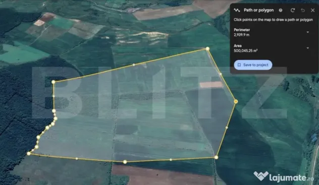 Blitz vă propune spre vânzare un teren vast de 50 Ha (500,000 mp), ideal pentru investiții în domeniul agricol sau pentru dezvoltarea unui parc fotovoltaic. Situat într-o zonă cu potențial înalt, terenul vine cu un avantaj competitiv datorită accesului la infrastructura electrică de înaltă tensiune de 110 kW în proximitate și la o sursă de medie tensiune de aproximativ 15-20 kW, asigurând astfel necesarul energetic pentru orice tip de proiect.