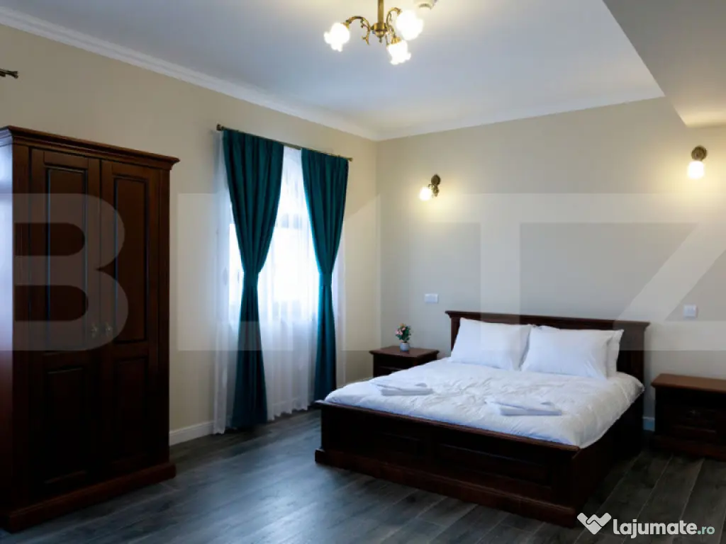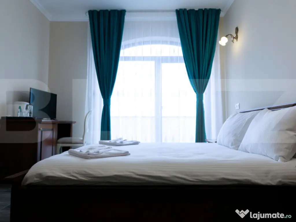 Oportunitate de Investiție în Exclusivitate: Hotel Imperium-Proprietate de Lux cu Potențial Major. Se oferă spre vânzare Hotel Imperium, un hotel boutique de lux situat la ieșirea din comuna Botiz, pe un teren generos de 10.000 mp, la doar câteva minute de municipiul Satu Mare. Proprietatea reprezintă o oportunitate excelentă pentru investitori care caută un business matur, cu potențial semnificativ de extindere și dezvoltare. Caracteristici cheie ale proprietății: • Suprafață teren: 10.000 mp — ideal pentru extinderi, facilități complementare sau dezvoltări ulterioare. • Capacitate de cazare: 13 camere atent amenajate: • 8 camere duble • 2 camere single • 3 apartamente cu living și dormitor, finisate premium • Design interior premium: mobilier din lemn masiv, băi spațioase, climatizare modernă, Wi-Fi, minibar și tehnologie actuală — fiecare spațiu gândit pentru confort de nivel superior. Spații pentru evenimente: • Sală de evenimente elegantă, cu o capacitate de până la 250 de persoane, ideală pentru nunți, botezuri, aniversări și conferințe. • Terasa laterală, un atu major al proprietății: • capacitate de 120 de persoane, • ponton ideal pentru ceremonii în aer liber, • 4 separeuri private, excelente pentru evenimente intime, • bucătărie deschisă complet dotată. • Servicii integrate de organizare a evenimentelor: consultanță privind decorul, meniul, logistica, optimizarea bugetului și planificarea completă a momentului. Avantaje pentru investitor: • Business multifuncțional: cazare + evenimente + terasă premium — trei fluxuri solide de venit. • Potențial ridicat de dezvoltare: suprafața mare a terenului permite adăugarea unui spa, a unor construcții noi sau a unor facilități corporate. • Poziționare strategică: acces rapid din Satu Mare, zonă în plină dezvoltare, vizibilitate excelentă. • Imagine premium deja consolidată, ce poate fi capitalizată pentru rentabilitate crescută. Hotel Imperium este o investiție solidă, rafinată și versatilă, ideală pentru un investitor care caută un business profitabil, cu perspective excelente de creștere. Cod ofertă / ID BLITZ: P158884 Id intern: P158884 Stadiu construcţie: Finalizat Număr încăperi: 13
