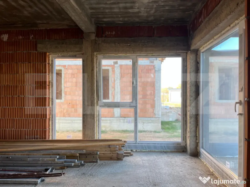 Blitz vă propune spre achiziție un duplex elegant, amplasat într-o zonă retrasă și liniștită, ce oferă un echilibru perfect între confort, funcționalitate și un design arhitectural modern. Stadiul constructiei: * La roșu (interiorul nefinisat) – exteriorul, grădina, fațada și locurile de parcare vor fi predate conform randărilor, la prețul de 165.000 euro; Detalii tehnice și facilități: - Duplexul este bransat la toate utilitățile; - Acoperiș din țiglă, fără pod; - Terasă spațioasă și intabulată de 15 mp, cu șapă turnată pentru izolație; - Curte generoasă de aproximativ 300 mp, ideală pentru relaxare sau amenajare peisagistică; - Două locuri de parcare incluse. Compartimentare interioară: - Suprafața totală este de 137 mp, din care 118 mp utili, dispuși pe parter și etaj. Parter: - Cameră ce poate fi utilizată ca dormitor sau birou, în funcție de necesități; - Baie de serviciu spațioasă; - Cameră tehnică; - Living generos și luminos, open-space cu bucătăria; - Bucătărie deschisă, cu posibilitatea de închidere, în funcție de preferințele cumpărătorului. Etaj: - Două dormitoare matrimoniale, fiecare beneficiind de baie proprie și acces la balcon individual, oferind intimitate și o priveliște plăcută asupra zonei. Acest duplex reprezintă alegerea ideală pentru cei care își doresc o locuință modernă, construită cu atenție la detalii, într-un mediu liniștit, dar aproape de toate facilitățile urbane. Zona în care este amplasat duplexul se află în plină dezvoltare, în imediata apropiere se regăsesc creșă, magazine și alte facilități esențiale, asigurând un trai comod și practic. Prețul pentru predare " la cheie" este de 210.000 euro. Pentru mai multe informații, vă invităm să ne contactați și să programăm o vizionare a proprietății! Cod ofertă / ID BLITZ: P157079 Id intern: P157079 Număr niveluri imobil: 1 Număr Băi: 3 Nr. locuri parcare: 2 Curent Apă Canalizare Gaz Climă