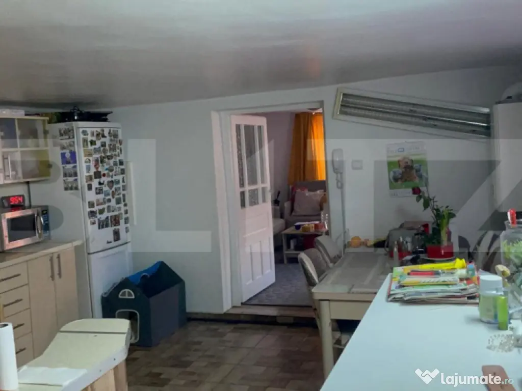 Blitz vinde o casă tip duplex, situată într-o zonă liniștită de case din cartierul Dâmbul Rotund. Proprietatea beneficiază de un regim de înălțime P+E+Pod și este compartimentată astfel: Compartimentare: ???? Parter: hol, baie, bucătărie spațioasă cu dining, cameră (poate fi folosită ca living), cămară ???? Etaj: hol, baie, 2 dormitoare, 2 nișe, debara Curte & Anexe: ✅ Curte pavată cu rocă vulcanică ✅ Grădină ideală pentru relaxare și întâlniri cu prietenii ✅ Cabana de 60 mp pentru petreceri, cu loc de dormit ✅ Garaj pentru depozitare de peste 30mp. ✅ Cămară suplimentară Casă foarte bine izolată – costuri reduse la întreținere! Clasa energetica B+. ???? Suprafață utilă: 90 mp ???? Suprafață teren: 625 mp Pentru mai multe detalii sau vizionare, nu ezitați să mă contactați! ???? Cod ofertă / ID BLITZ: P142168 Id intern: P142168 Număr niveluri imobil: 1 Număr Băi: 2 Nr. locuri parcare: 1 Curent Apă Canalizare Gaz