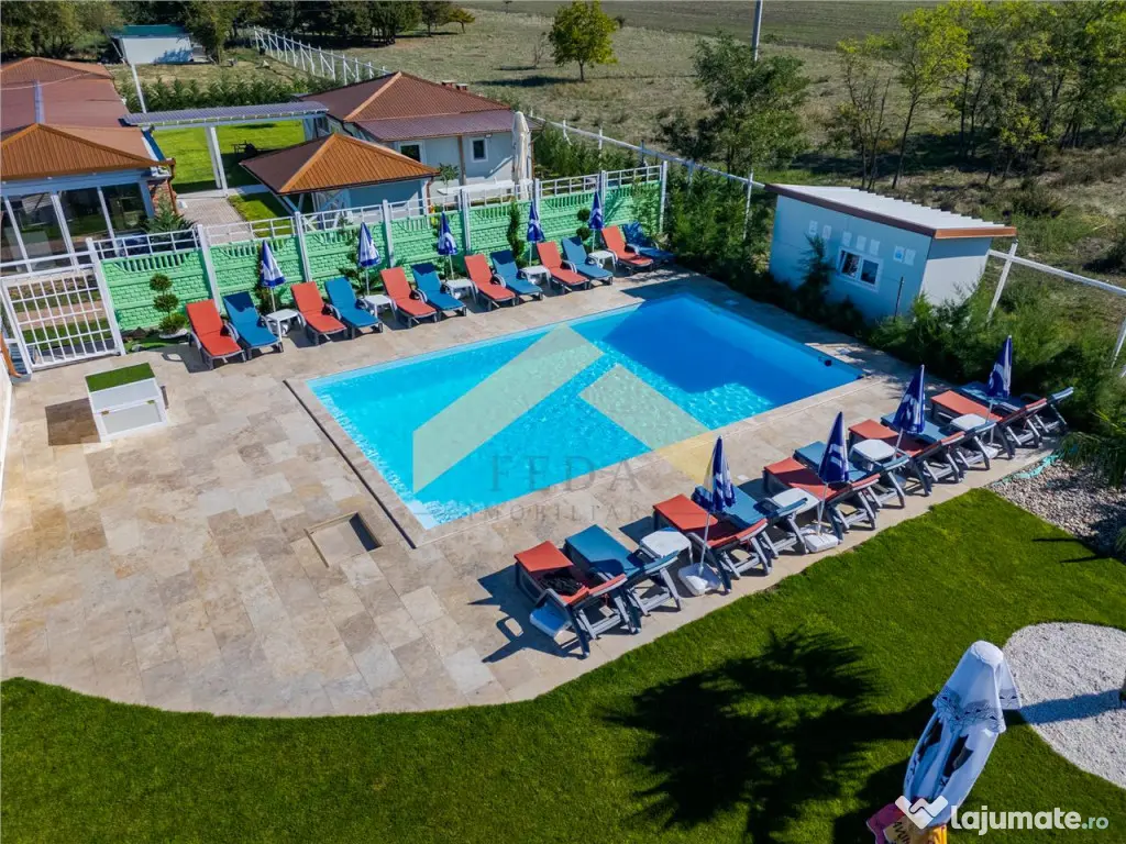 Oportunitate de investitie!!FEDA Imobiliare va ofera spre vanzare un domeniu multifunctional cu o suprafata de 24,000 mp (2,4 ha), pozitionat strategic pe drumul DN79 Aradndash;Oradea, cu 240 ml front stradal si 2 accese autorizate la drumul national. Elemente cheie:2 business-uri active autorizate:- Sala de evenimente tip terasa (560 mp), complet utilata.- Piscina incalzita (11 times; 6 m) cu plaja amenajata Infrastructura existenta:- Drumuri pavate asfaltate asymp;4.000 mp.- Platforme (asymp;2.600 mp) pentru logistica depozitare extindere.- Grupuri sanitare, birouri, spatii tehnice si vestiareUtilitati complete si autorizari DSV, DSP, ISU ndash; proiect 100% functional legal.Securitate si amenajari premium: domeniu imprejmuit, supraveghere video, peisagistica profesionala (plante decorative import Italia).Oportunitati de dezvoltare:Agrement si turism: extinderea complexului cu spatii de cazare, camping, wellness spa.Evenimente si corporate: consolidarea zonei de evenimente (nunti, conferinte, retreat-uri).Pozitionare strategica:DN79 ndash; axa Aradndash;Oradea, trafic intens zilnic.Acces direct la Municipiul Arad, aproape de granita si coridoare europene.Pentru mai multe detalii sau programarea unei vizionari, nu ezitati sa ma contactati telefonic!!Felix Petru-0723 535 000