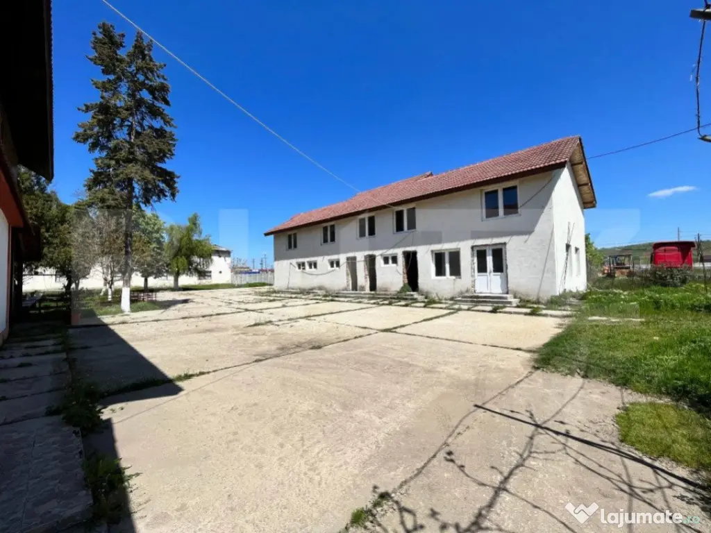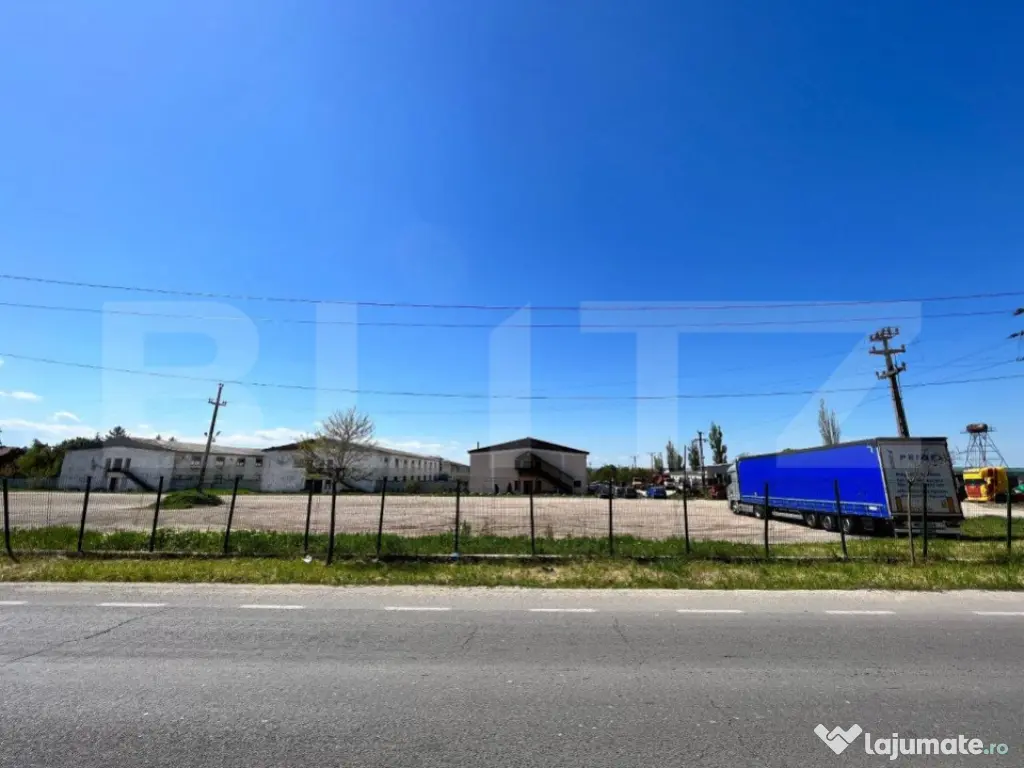 BLITZ vine în întâmpinarea investitorilor cu o proprietate deosebită, cu multiple destinații posibile. Imobilul este compus dintr-un teren intravilan de 45.000 mp, cu deschidere mare și acces direct din drumul european (pe capete și la mijloc), 8 hale a câte aproximativ 2.200 mp fiecare, regim de înălțime P + E, una dintre ele finisată și funcțională, cu spații de birouri, de depozitare și de locuit amenajate la interior. Pe toate cele 8 hale există posibilitatea de montare a 4 kituri fotovoltaice de câte 400 kW, unul dintre ele fiind în proces de activare. Proprietatea beneficiază de toate utilitățile, curent trifazic, platformă betonată și o deschidere foarte mare la drum. De asemenea, pe teren se mai află o casă finisată și locuită cu regim de înălțime P + E de 240 mp, cu piscină și curte amenajate, precum și o casă regim P + E cu camere tip hotel, la stadiu semifinisat, de aproximativ 360 mp. Prețul pentru varianta completă a activului imobiliar, respectiv cu cele două case prezentate mai sus, este de 2.900.000 euro + TVA. Proprietatea devine și mai interesantă prin posibilitatea susținerii consumului de energie electrică prin panourile fotovoltaice montate pe acoperiș sau pur și simplu prin injectarea în rețea a energiei produse ce devine astfel o sursă suplimentară de venit. Pentru mai multe detalii și discuții aplicate pe posibilitățile de dezvoltare ale imobilului vă stăm la dispoziție. Cod ofertă / ID BLITZ: P8602 Id intern: P8602