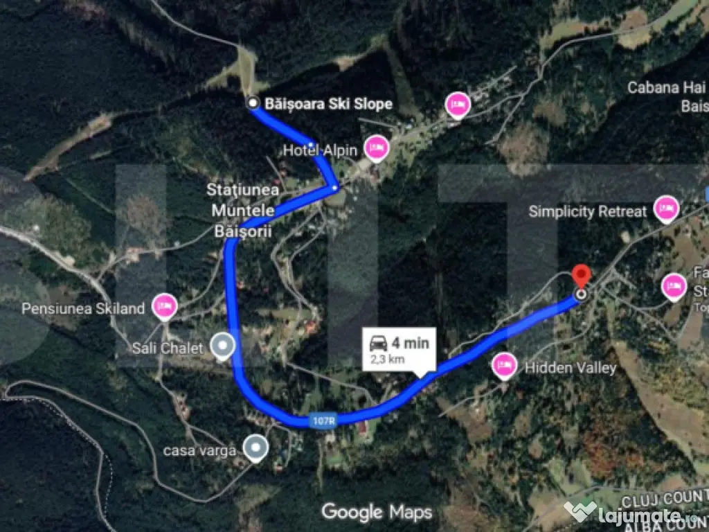 Blitz propune spre vânzare un teren intravilan 990 mp, front 23 m in zona exclusiva, limitata de pădure, pe versant cu panorama. Terenul se afla in Stațiunea Muntele Băișorii, zona Cabanei Militare la câteva minute de pârtiile de schi, BAISOARA si BUSCAT ! Ideal pentru construcție casa vacanta, cabana, pensiune. Panorama deosebita, terenul beneficiază de expunere sudica, utilitati in apropiere 150m (bransament curent ), acces din DN. Situație juridica clara, extras CF, certificat urbanism. Cod ofertă / ID BLITZ: P155908 Id intern: P155908
