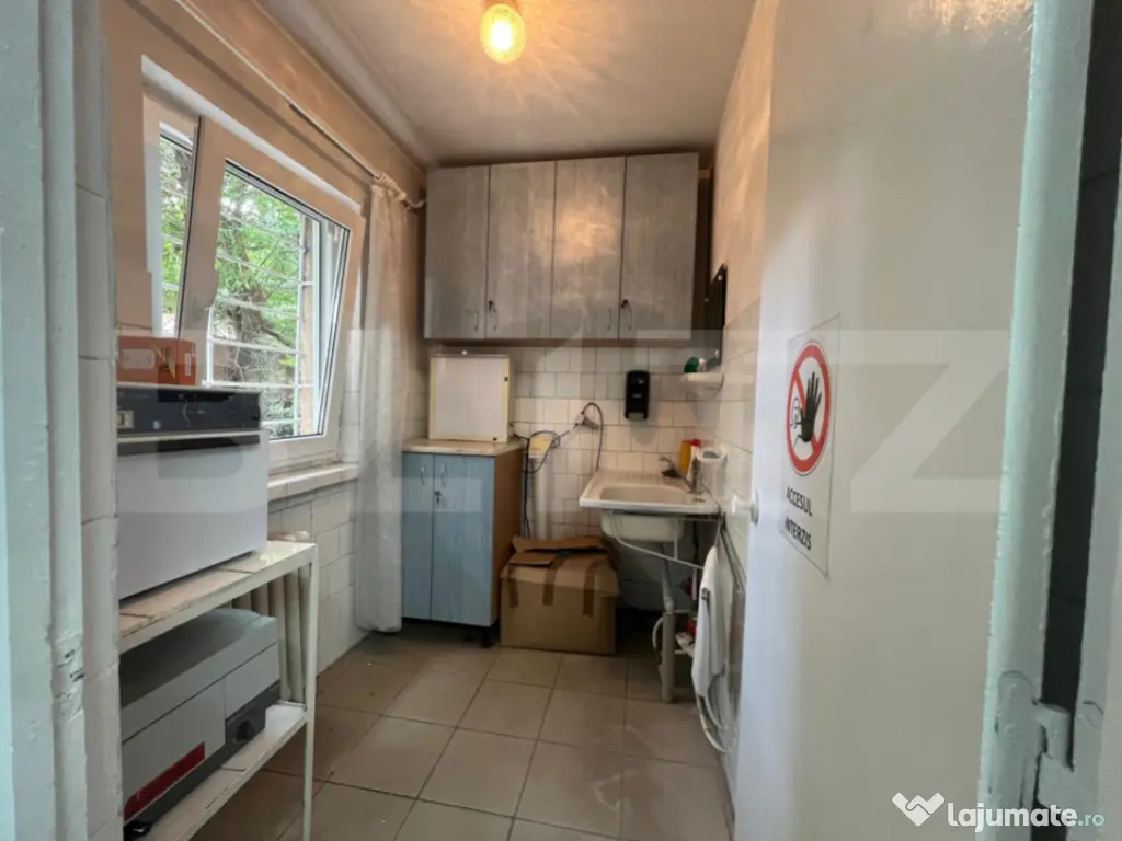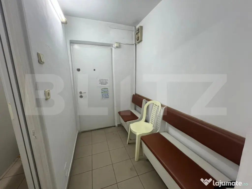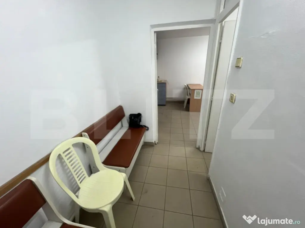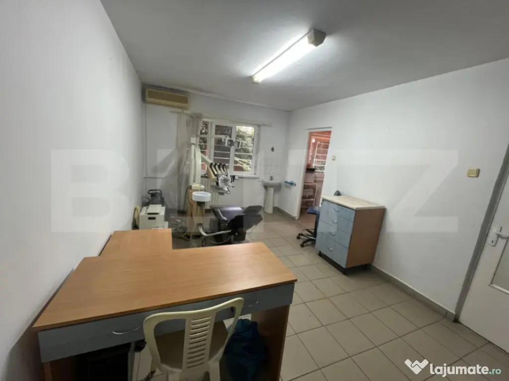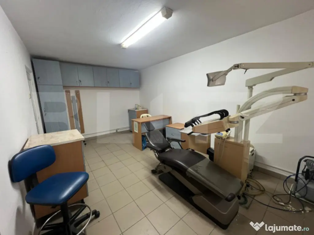 BLITZ oferă spre închiriere acest cabinet stomatologic complet echipat, cu o suprafață totală de 28 mp, situat la parterul unui bloc din zona Valea Roșie, Craiova – o oportunitate unică pentru orice medic stomatolog care dorește să își desfășoare activitatea într-o zonă fără concurență directă. Amplasat într-un cartier dens populat și lipsit în prezent de alte cabinete stomatologice, acest spațiu medical beneficiază de acordul vecinilor și are deja destinația legală de cabinet stomatologic, un aspect esențial care economisește timp și efort în demararea activității. Spațiul este compartimentat eficient, fiind format dintr-o zonă de așteptare pentru pacienți, cameră de sterilizare, grup sanitar cu toaletă separată pentru medic și pacienți, precum și un salon principal echipat cu scaun stomatologic, lampă și alte dotări specifice. Spațiul dispune și de aer condiționat pentru un confort termic optim pe tot parcursul anului. Cabinetul este funcțional dar necesită renovare. Proprietarul este deschis la acoperirea unor costuri pentru mici modificări sau poate colabora cu viitorul chiriaș pentru îmbunătățiri. Este o alegere ideală pentru medici stomatologi la început de drum, cabinete de proximitate sau extinderea unei francize într-o zonă cu potențial ridicat. În concluzie, această proprietate reprezintă o alegere strategică pentru orice profesionist în domeniul stomatologic care caută un spațiu legal, funcțional și amplasat într-o zonă fără competiție. Vă așteptăm cu drag pentru o vizionare și mai multe detalii! Cod ofertă / ID BLITZ: P148826 Id intern: P148826 Stadiu construcţie: Finalizat Tip imobil: Bloc de apartamente