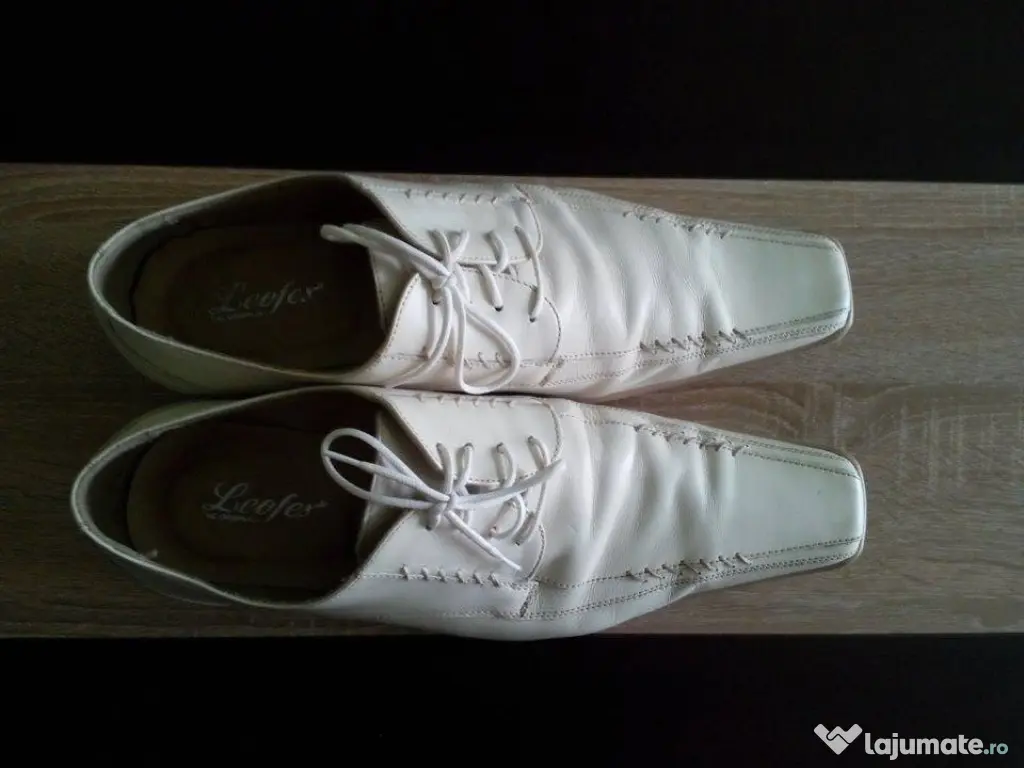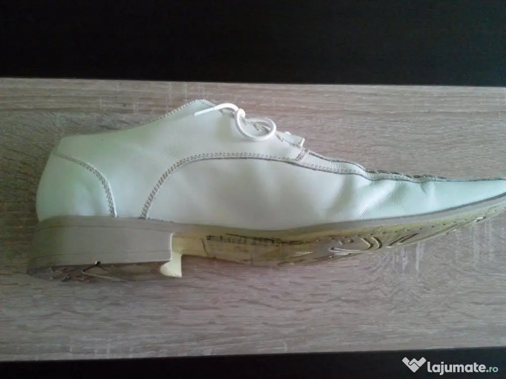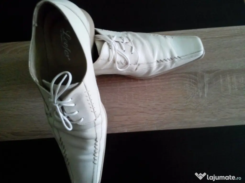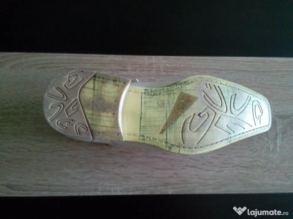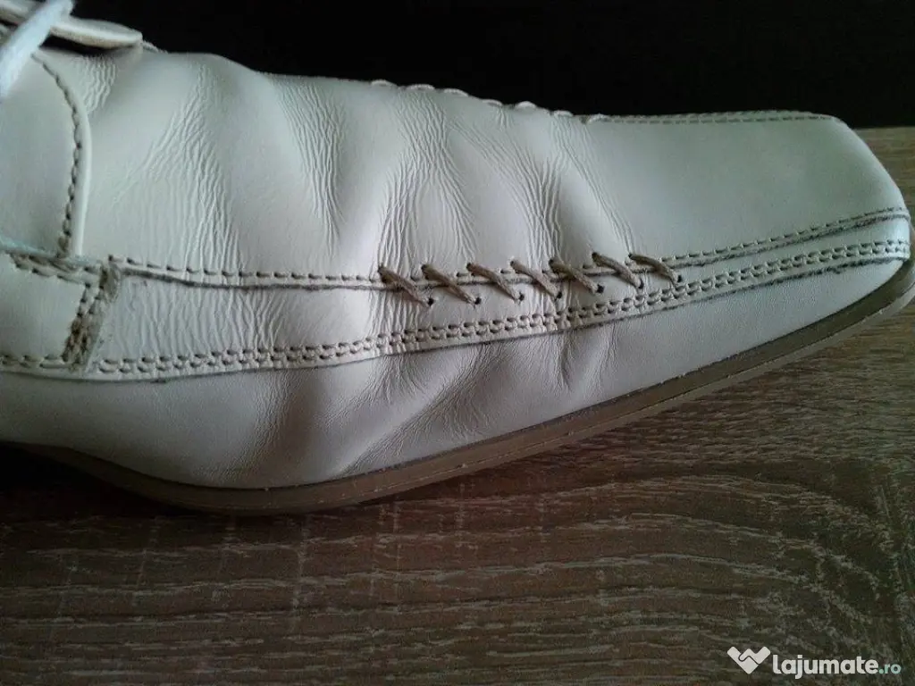 Culoare crem, marime 44, piele, purtati o singura data, stare foarte buna, nu prezinta nici un defect sau ruptura, cutie.