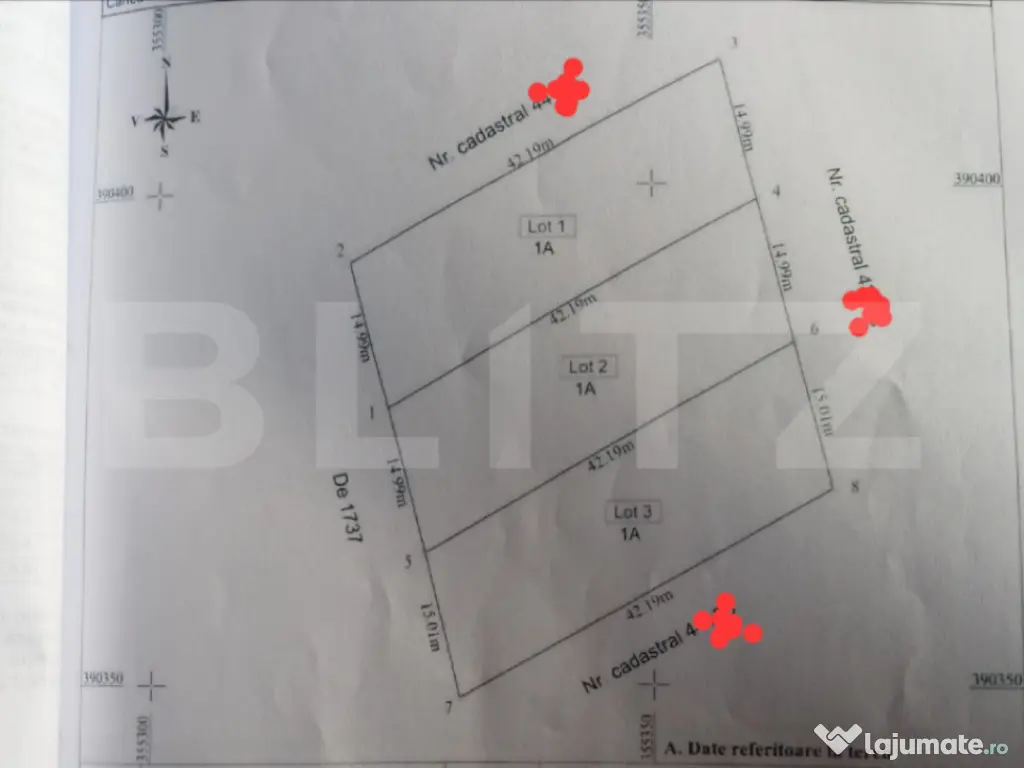 Blitz vă propune spre vânzare trei parcele de teren cu suprafața totală de 1830 mp, situat într-o zonă liniștită și bine poziționată din Bălești, sat Tamasesti. Din totalul suprafeței, fiecare parcela are suprafata de 610 mp terenul este intravilan. Proprietatiile dispun de o deschidere la stradă de 15 ml, oferind multiple posibilități de amenajare. Utilități disponibile la frontul proprietății: -curent electric -apă -canalizare Terenul este ideal pentru construcția unei case sau a unei reședințe de vacanță, beneficiind de acces facil la oraș și de toate utilitățile necesare pentru un trai confortabil. Distanță față de Târgu Jiu: doar 10 km O alegere excelentă pentru cei care își doresc liniște, spațiu și proximitate față de oraș! Cu mai multe detalii va asteptam la vizionare! Cod ofertă / ID BLITZ: P158238 Id intern: P158238