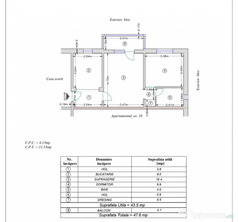 Etaj 4 din 4, retras, intim, bloc reabilitat termic de Primăria Bacău, inclusiv casa scării și hidroizolația de pe imobil (polistiren de 20 deasupra, apoi hidroizolație)