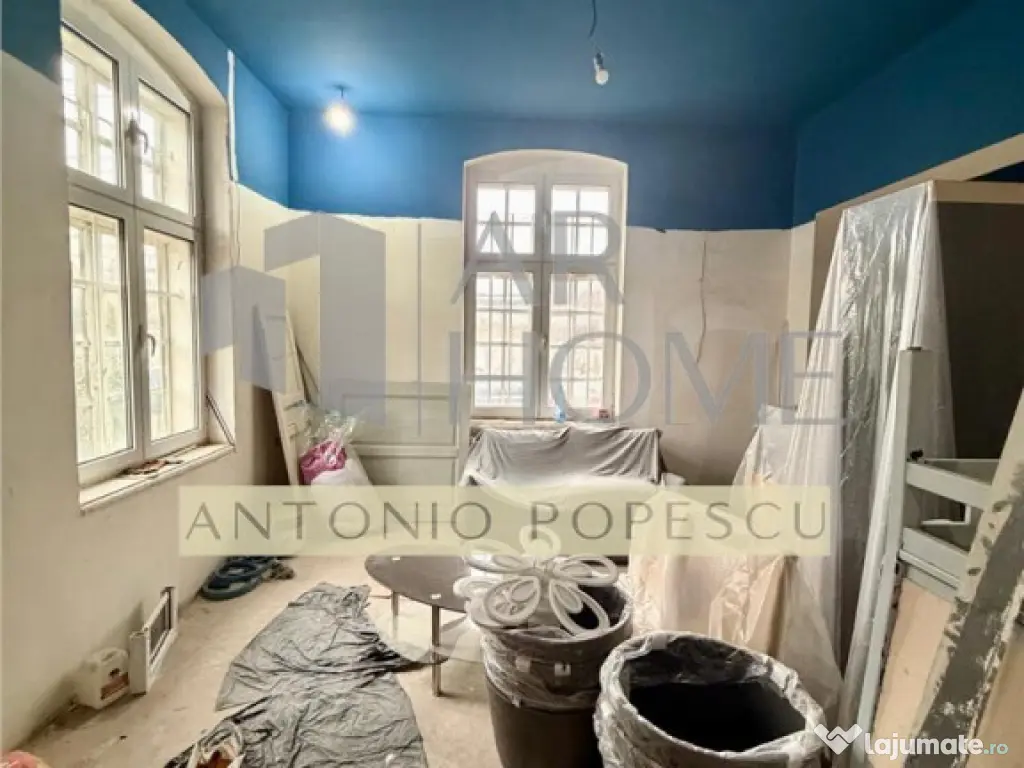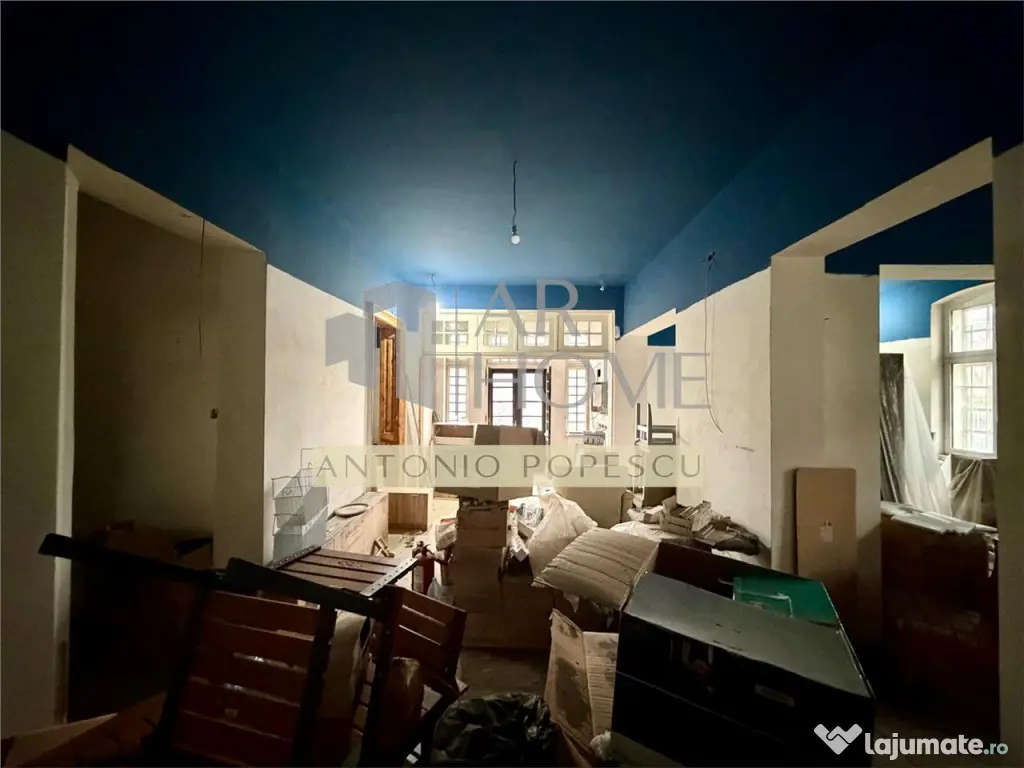 Inchiriere parter imobil si curte proprie pretabil pentru diferite activitati comerciale, in Ploiesti ultracentral. Se afla intr- o zona cu vad comercial avand ca vecinatati restaurente, muzeul Ceasului, restaurant Bulevard, Unicredit Bank, Colegiul National Viteazul, mijloace de transport in comun etc. Are o suprafata utila de 180 mp, curte libera 260 mp. Imobilul se inchiriaza complet renovat, cu fatada refacuta, centrala termica proprie, incalzire in pardoseala, instalatia electrica pe cupru, peretii gletuiti si vopsea lavabila, 3 intrari, inaltime camere 3 m, tamplarie PVC etc. Utilitati: curent 220V/ 380V, apa, gaz, canalizare. Pret: 2500 euro TVA. Număr Băi: 1 Posibilitate parcare: Da Nr. locuri parcare: 5-10 Curent Apă Canalizare Gaz