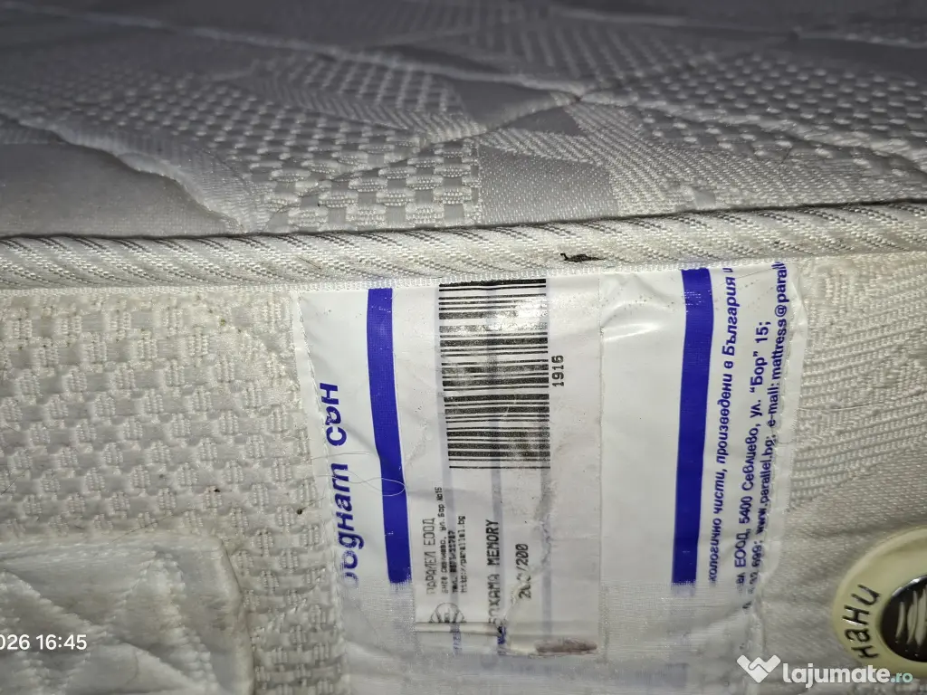 Pat 2mx2m, cu noptire și tablie iluminata, ladă de depozitare și saltea cu memorie.