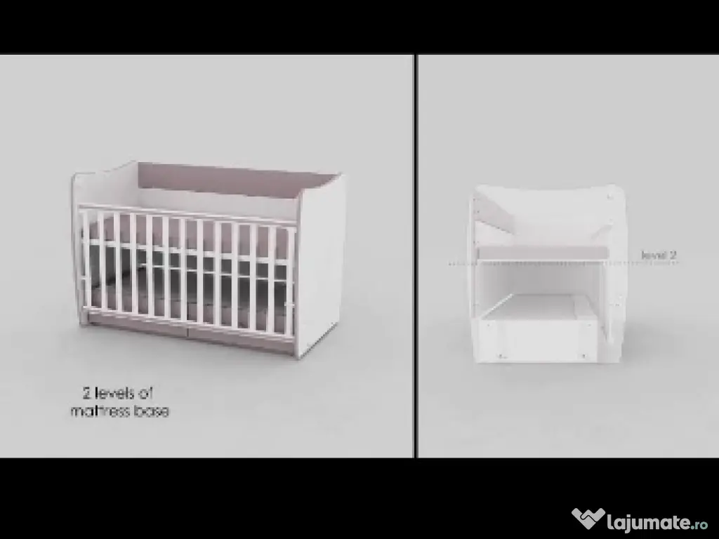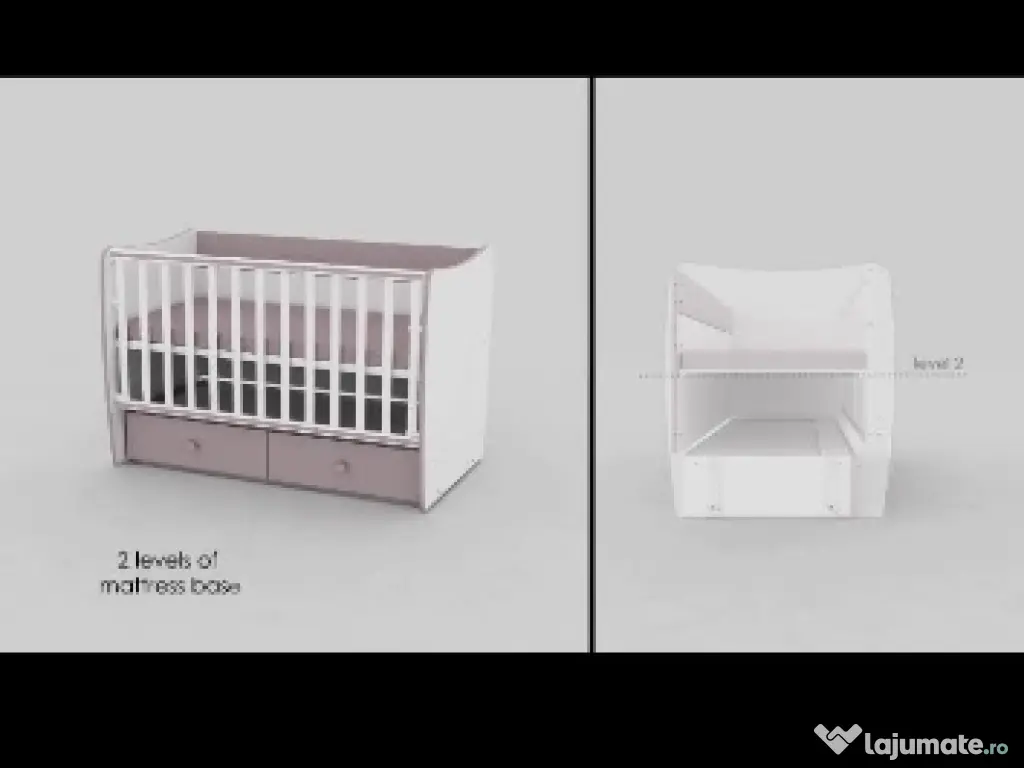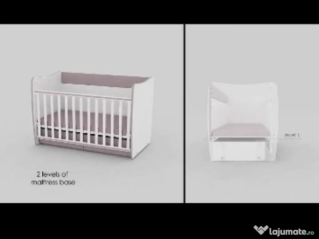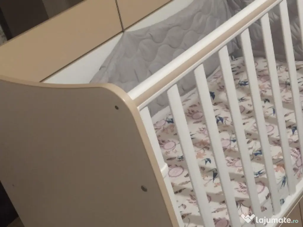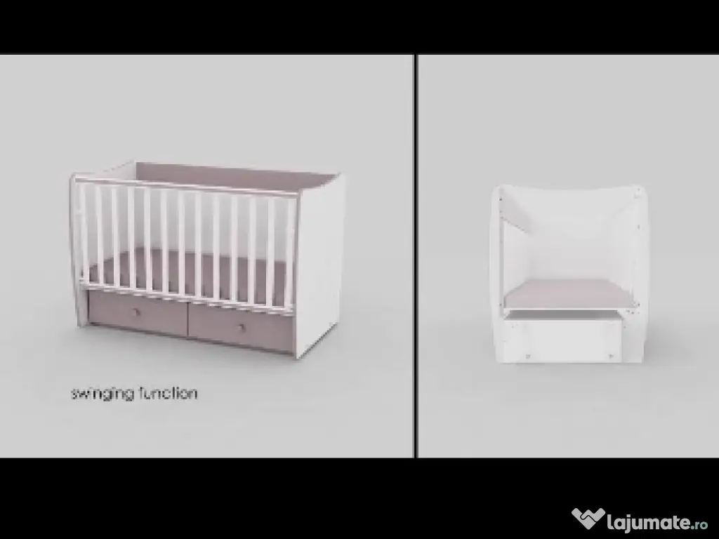 Patut bebe marca Lorellai 3in 1 cu functie balansoar. se transforma in patut bebe mic prin ridicarea nivelului saltei pe 3 pozitii. se transforma in patut copil prin lasarea saltelei si 2 pozitii pentru marginea laterala se transforma in pat siplu prin desfintarea lateralei are 2 sertare incapatoare saltea de bambus inclusa
