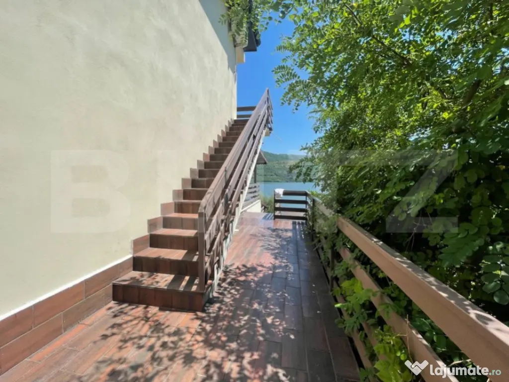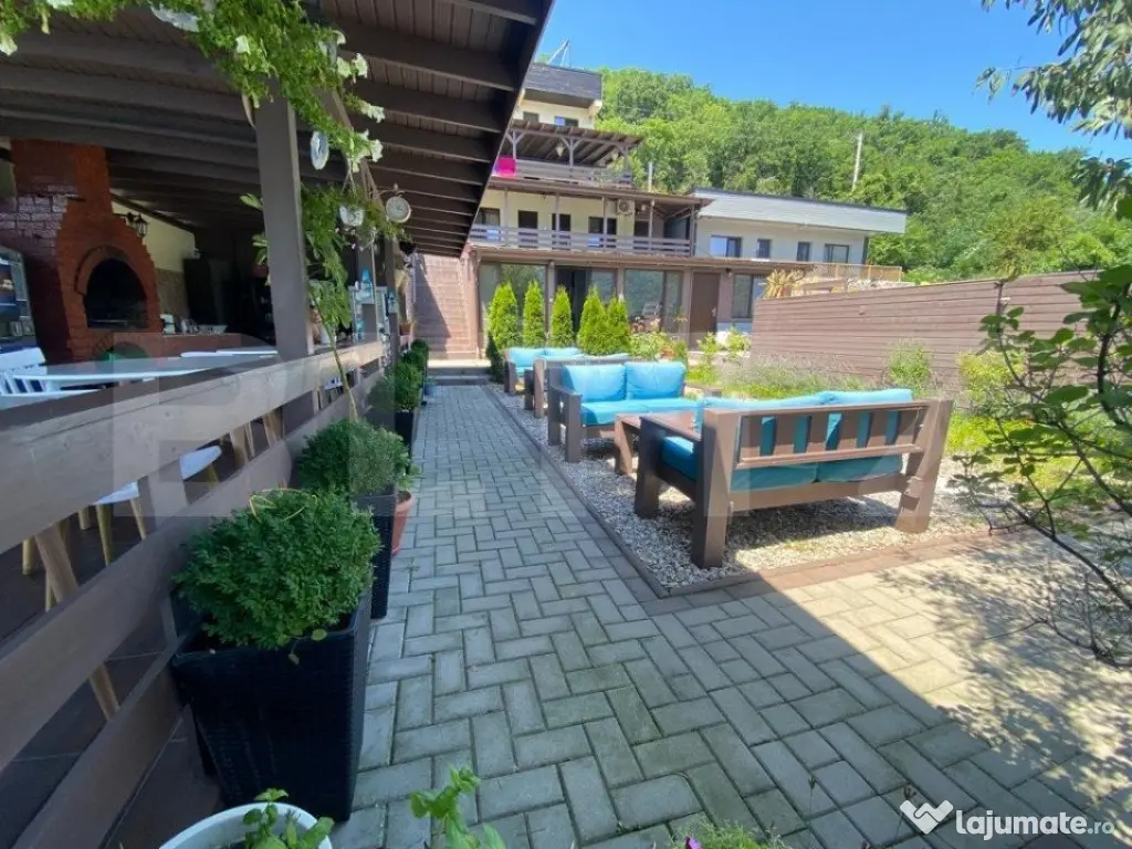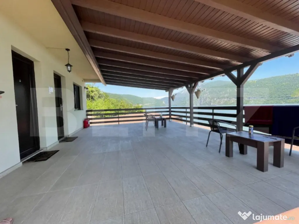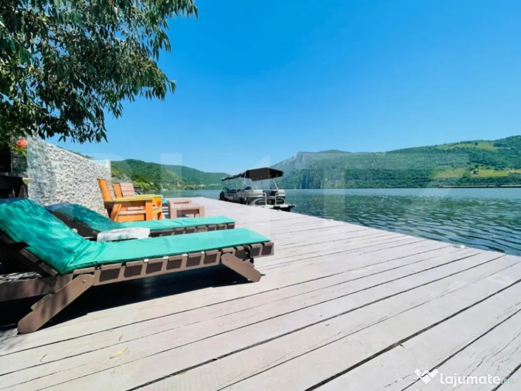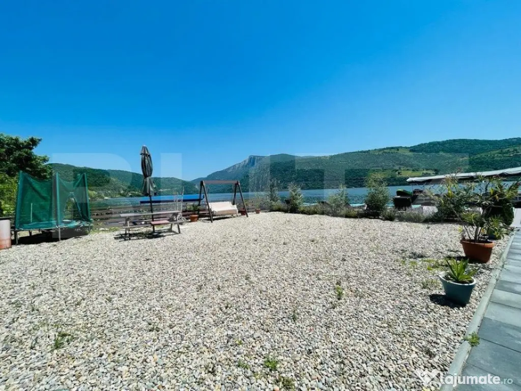 Iti oferim oportunitatea sa investesti intr-o locatie magica! Dubova, pe malul Dunarii, liniste si atmosfera relaxanta, aici te asteptam sa-ti incepi noul business sau sa o transformati in casa de vacanta mult visata! Cu un rating exceptional de 9,8 pe Booking, proprietatea se intinde pe un teren 600 mp si are living spatios, 8 camere si doua studiouri, 10 bai, bucatarie exterioara, dotata si utilata. Vila are 360 mp utili, cu posibilitatea de extindere de 140 mp. Oaspetii se pot bucura de un peisaj superb, relaxandu-se pe pontonul proprietatii sau in piscina tip infinity, impreuna cu familia si prietenii. Exista spatiu pentru parcare, minim 8 locuri in fata proprietatii. Accesul este facil si oaspetii pot gasi locatia cu usurinta. In pretul pensiunii, va oferim si un catamaran cu o capacitate de 12 persoane, de care clientii vor fi incantati, cu siguranta! Va suntem la dispozitie pentru orice alte detalii sau informatii! Este o ocazie minunata sa va bucurati de valurile Dunarii, in pasi de vals! Cod ofertă / ID BLITZ: P8422 Id intern: P8422 Număr niveluri imobil: 2 Număr Băi: 10 Nr. locuri parcare: 5-10
