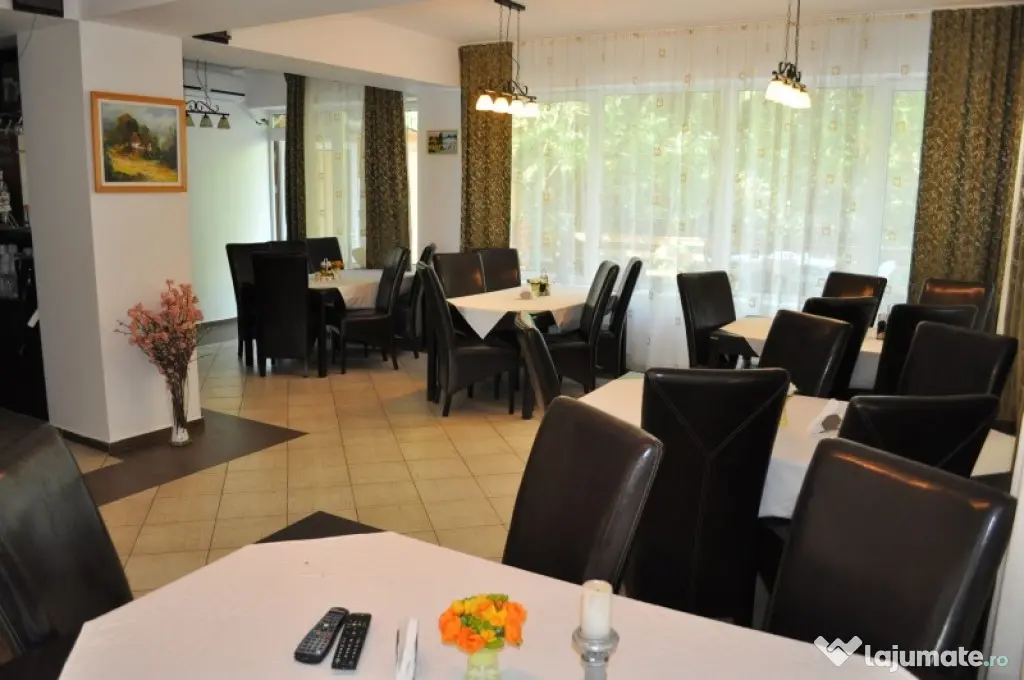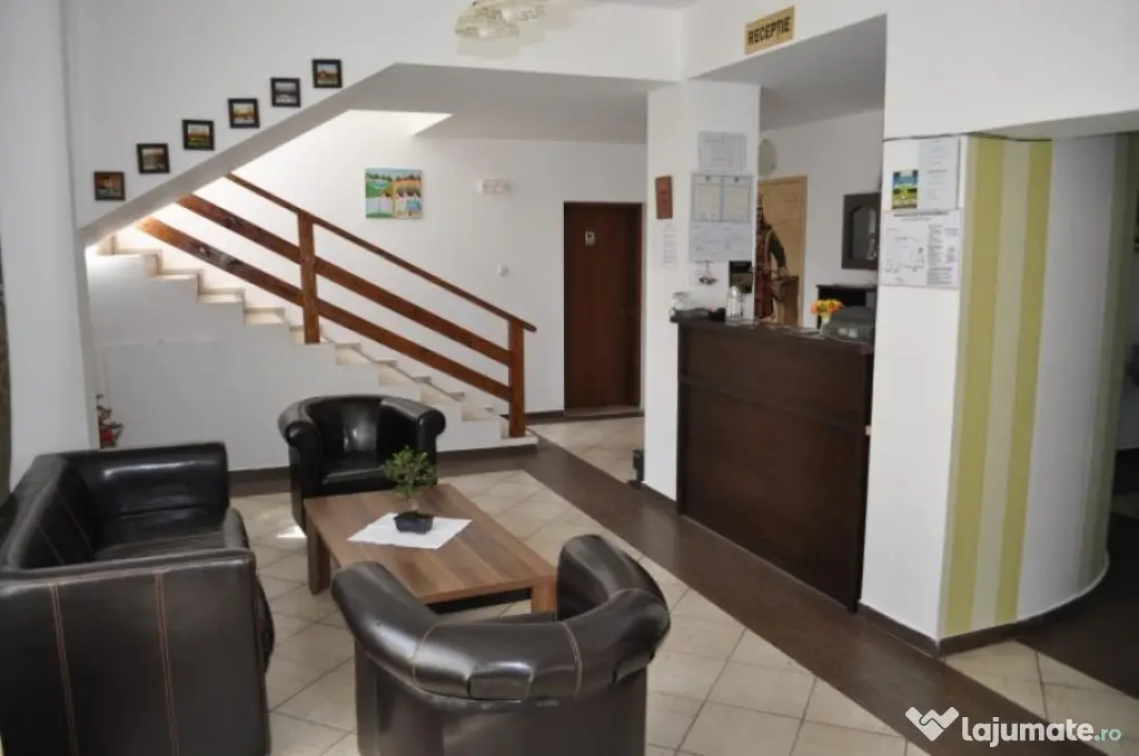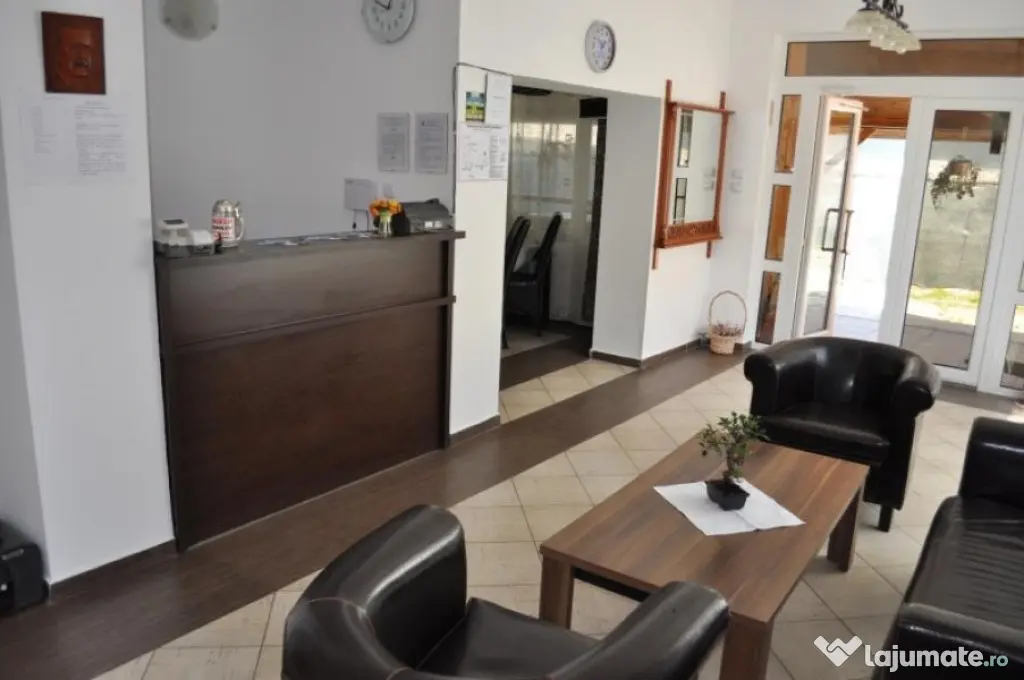 Vand pensiune in Moneasa, cu teren in suprafata totala de 3.800 mp. Pensiune formata din 8 camere cu 2 paturi, mobilate modern, televizor LCD, baie cu dus si balcon. Camerele sunt repartizate astfel: 6 la etajul 1 si 2 la etajul 2. Restaurant cu o capacitate de 30 de locuri si 2 terase generoase. Livingul poate fi organizat ca sala de conferinte, fiind dotat cu proiector video. Facilitati la cazare: internet, wireless, piscina in curte, room service, seif la receptie, loc de joaca, restaurant, sala de conferinte. Camerele dispun de internet, uscatoare de par, balcon, minibar, telefon, tv.