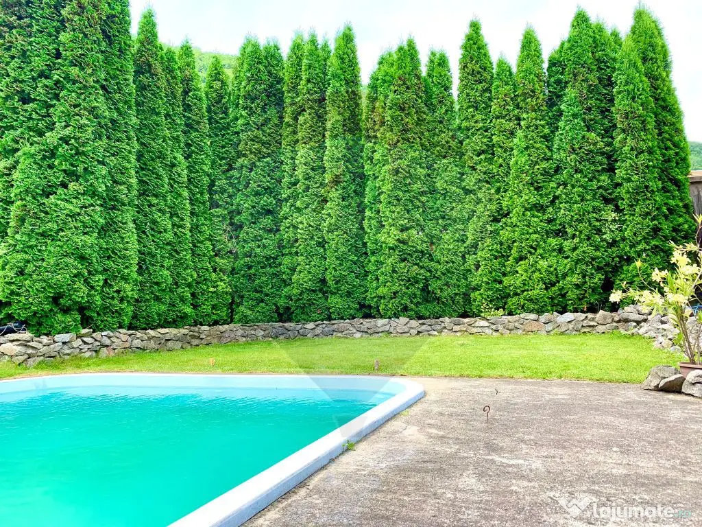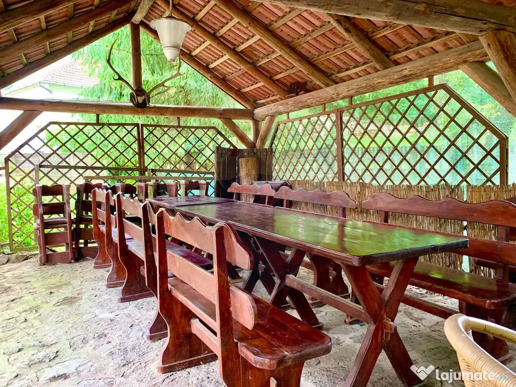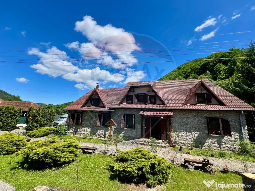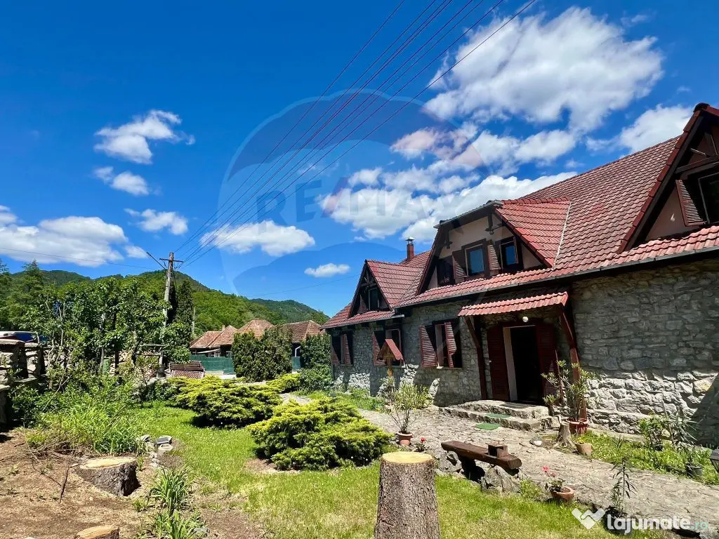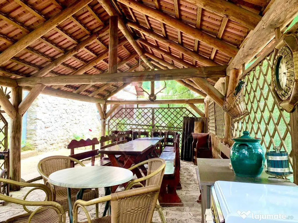 Îmi face o deosebită plăcere să vă prezint spre vânzare această proprietate unică, situată în localitatea Bulz, județul Bihor. Bulz este un sat fermecător înconjurat de peisaje muntoase spectaculoase, păduri dese și câmpuri pitorești. Datorită amplasării într-o zonă atât de frumoasă poate fi o alegere excelentă ca și casă de vacanță precum și o bună oportunitate de business. Suprafețele generoase ale casei și compatimentarea existentă permit funcționarea ca pensiune, de altfel până de curând proprietatea a funcționat în regim turistic. Dispunerea proprietății: Pe un teren de 1100 mp regăsim construcția de aproximativ 830 mp, pe 3 nivele,: -Demisolul este amenajat ca și cramă, cu acces atât din curte cât și din interiorul casei. -Parterul este compus din: zonă de recepție, spălătorie, 3 băi, 2 dormitoare și un apartament generos cu living, dormitor și baie proprie. De asemenea la parter regăsim bucătăria complet mobilată și utilată, cameră pt alimente, camera tehnică, sala de mese și un living spațios cu șemineu din piatră, -Etajul este compus din 7 camere, fiecare cu baie proprie. La etaj există, de asemenea spălătorie și uscătorie. Fiecare cameră oferă o vedere minunată către peisajul înconjurător, oferind o ședere relaxantă și liniștită. -Podul este pregătit pentru încă 4 camere, fiecare cu baie proprie (au fost aduse și la acest nivel instalații pentru apă, scurgeri pentru băi și curent). Arhitectura proprietății este caracteristică zonei, respectând specificul local, însă cu un aer boem și confortabil. Clădirea este construită într-un stil tradițional, cu elemente din lemn, piatră și granit, ce se îmbină armonios cu natura înconjurătoare. Proprietatea dispune și de diverse facilități pentru agrement și relaxare. O piscină în aer liber care oferă o oază de răcoare în zilele călduroase de vară. Piscina este dotată cu instalație de recirculare, filtrare și încălzire a apei. Filigoria de 40 mp, cu un cuptor din piatră și mobilată adecvat, permite oaspeților să se bucure de mese în aer liber pe toată perioada șederii. În concluzie, această proprietate superbă din Bulz, Bihor, oferă o experiență autentică și liniștitoare în mijlocul frumuseții naturale a zonei. Este locul ideal pentru evadările în natură și descoperirea tradițiilor autentice ale acestei regiuni fascinante. Dacă ați reusit să vedeți potențialul extraordinar pe care această proprietate îl prezintă , vă rog să mă contactați pentru mai multe informații sau pentru a programa o vizionare! Agenția nu percepe comision de la cumpărător! An finalizare construcție: 2007 Stadiu construcţie: Finalizat Număr încăperi: 13 Posibilitate parcare: Da Nr. locuri parcare: 10-20
