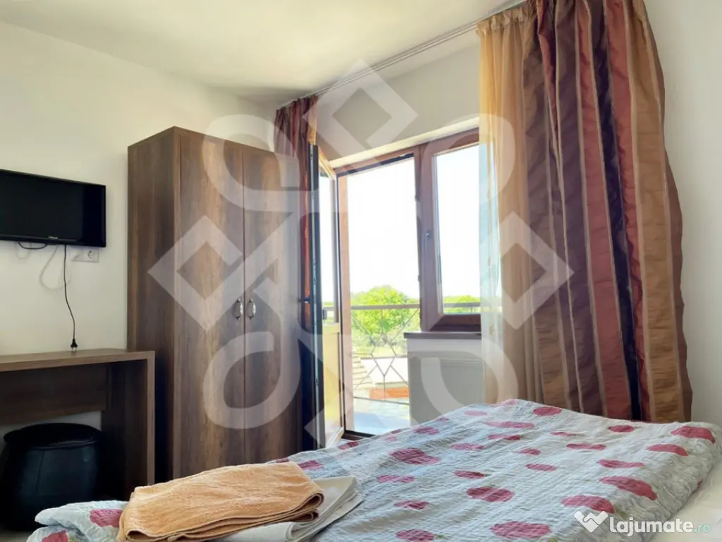 Agentia imobiliara D`Art Imob va ofera o Pensiune cu 7 camere de vanzare in Baile 1 Mai Imobilul este dispus pe 3 nivele: D+P+E, masoara o suprafata utila de 318 mp si este amplasata pe un teren cu suprafata de 870 mp. A fost construit in anul 1990 din caramida cu fundatie de beton si acoperis din tigla. Pensiunea a fost renovata in anul 2016, acoperisul si toate instalatiile electrice si sanitare au fost schimbate. Mai mult, a fost izolata pe exterior cu polistiren. Este dotata cu geamuri termopan si tamplarie PVC, usi de interior din MDF, gresie, faianta, parchet laminat si mocheta in unele camere. La parter regasim 3 camere cu baie proprie din care una are si iesire directa catre curte. Tot la parter este si un spatiu pentru depozitare. Etajul este compartimentat in 4 camere din care 2 au balcon comun si 1 are balcon propriu. Toate camerele au baie proprie cu cabina de dus, sunt mobilate si utilate, dispun de TV si acces la internet. La demisol se afla camera tehnica si un spatiu ce poate fi amenajat ca bucatarie. Suplimentar, podul cladirii poate fi folosit ca spatiu de depozitare. Proprietatea este imprejmuita cu gard de beton, iar curtea este amenajata cu pietris, gazon si arbusti ornamentali. Tot in curte regasim si o filigorie amenajata cu barbeque, mese si scaune. Dispune de acces auto in curte si este racordata la retelele de electricitate, apa si canalizare. Incalzirea se realizeaza cu ajutorul centralei proprii pe lemne. Ca amplasament, se afla la aproximativ 500m de centrul statiunii Baile 1 Mai. Pretul pentru aceasta Pensiune cu 7 camere de vanzare in Baile 1 Mai este de 265000 euro Pentru detalii suplimentare, informatii si vizite, ne puteti contacta la: Nr. Tel.: 0767145857 – Ramona Tica e-mail: [email protected] Sau la sectiunea contact din site-ul nostru: www.dartimob.ro De asemenea, ofertele noastre le puteti viziona si pe Facebook, accesand pagina D’Art Imob. ~~~~~~~~~~~~~~~~~~~~~~~~~~~~~~~~~~~~~~~~~~~~~~~~~~~~~~~~~~~~~~~~~~~~~~~~~~~~~~~~~~~ D`Art Imob real estate agency offers you a Pension with 7 rooms for sale in Baile 1 Mai The building is arranged on 3 levels: B + GF + E, measures a usable area of ​​318 sqm and is located on a plot with an area of ​​870 sqm. It was built in 1990 from brick with concrete foundation and tile roof. The pension was renovated in 2016, the roof and all electrical and sanitary installations were changed. Moreover, it was insulated on the outside with polystyrene. It is equipped with double glazed windows and PVC joinery, MDF interior doors, ceramic wall and floor tiles, laminate flooring and carpet in some rooms. On the ground floor we find 3 rooms with private bathroom, one of which has a direct exit to the yard. There is also a storage space on the ground floor. The floor is divided into 4 rooms, 2 of which have a shared balcony and 1 has its own balcony. All rooms have private bathroom with shower, are furnished and equipped, have TV and internet access. In the basement there is a technical room and a space that can be arranged as a kitchen. In addition, the attic of the building can be used as storage space. The property is fenced with concrete fence, and the yard is decorated with gravel, lawn and ornamental shrubs. Also in the yard we find a filigree arranged with barbeque, tables and chairs. It has car access in the yard and is connected to electricity, water and sewerage networks. The heating is done with the help of its own wood-fired boiler. As a location, it is located about 500m from the center of Baile 1 Mai resort. The price for this Pension with 7 rooms for sale in Baile 1 Mai is 265000 euros For additional details, information and visits, you can contact us at: Nr. Tel .: 0767145857 – Ramona Tica e-mail: [email protected] Or at the contact section of our site: www.dartimob.ro You can also view our offers on Facebook by accessing the D’Art Imob page. Id intern: P85 Număr niveluri imobil: 1 Număr Băi: 7 Comision cumpărător: 0% Nr. locuri parcare: 3 Curent Apă Canalizare