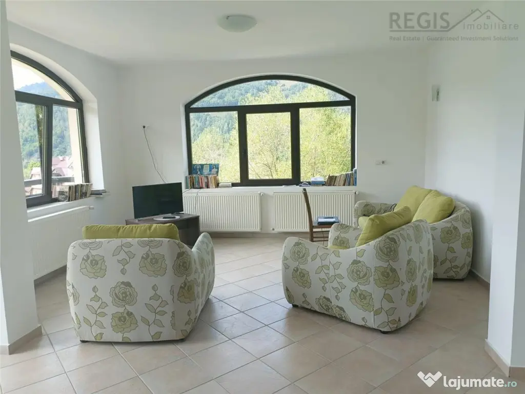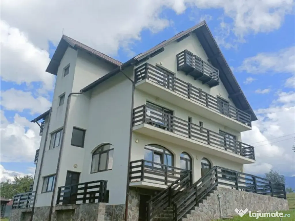 Regis Imobiliare va propune spre vanzareo minunata pensiune situata in inima naturii, in Bran, sat Simon, la aproximativ 7 minute distanta de castelul Bran. Ne aflam la poalele muntilor, intr-o zona pitoreasca si puternic dezvoltata agroturistic care te imbie sa traiesti autentic, departe de galagia orasului.. Pensiunea are caracter investitional si potential ce asteapta a fi exploatat. Vino sa o vizionezi si inspiratia ta cu siguranta va face din aceasta pensiune NOUA, SPATIOASA construita cu simtul raspunderii si compartimentata pentru tot confortul locatarilor, locul in care tursitii sa se rasfete. .Ce ii lipseste? Ciubarul , focul de tabara si gratarul cu focul aprins, sfaraind. Si energia ta poztiva si intreprinzatoare. Constructia a fost finalizata in anul 2019, a fost executata cu materiala de calitate, pe o structura de beton armat si caramida. Finisajele sunt actuale, in culori calde dar neutre, culori naturale ce se armonizeaza perfect cu mediul. Proprietatea este amplasata pe un teren de 1300 mp, amprenta la sol de 155 mp, iar suprafata utila este de 522 mp plus suprafata balcoanelor. Pensiunea se desfasoara pe un regim de inaltime D P 2E M, cu urmatoarea componenta: Demisol: hol, camera tehnica, bucatarie. Parter: doua dormitoare cu baie proprie, zona de servit masa(posibilitate amenajare bucatarie) zona de relazare cu acces la terasa si un grup sanitar. Etaul 1: patru camere, fiecare cu baie proprie si hol generos. Etajul 2 : 4 camere, fiecare cu baie proprie si hol generos. Mansarda: ofera posibilitatea de a o amenajata dupa necesitatile viitorului proprietar. Fiecare camera dispune de balcon, proprietatea dispune de 6 panouri solare pentru apa calda menajera cu boiler de capacitate 1000 l si doua centrale pe gaz; fosa septica. Toate incaperile sunt foarte spatioase, cu suprafete vitrate mari .Dormitoarele au baie individuala, hol si o suprafata utila de 22 mp. Accesul catre proprietate este facil , din drumul national, retrasa in acelasi timp de forfota soselelor. Pentru mai multe detalii si vizionari, nu ezitati sa ne contactati! Comision 0. ID intern: 2013. Număr Băi: 11 Curent Apă Gaz Demisol