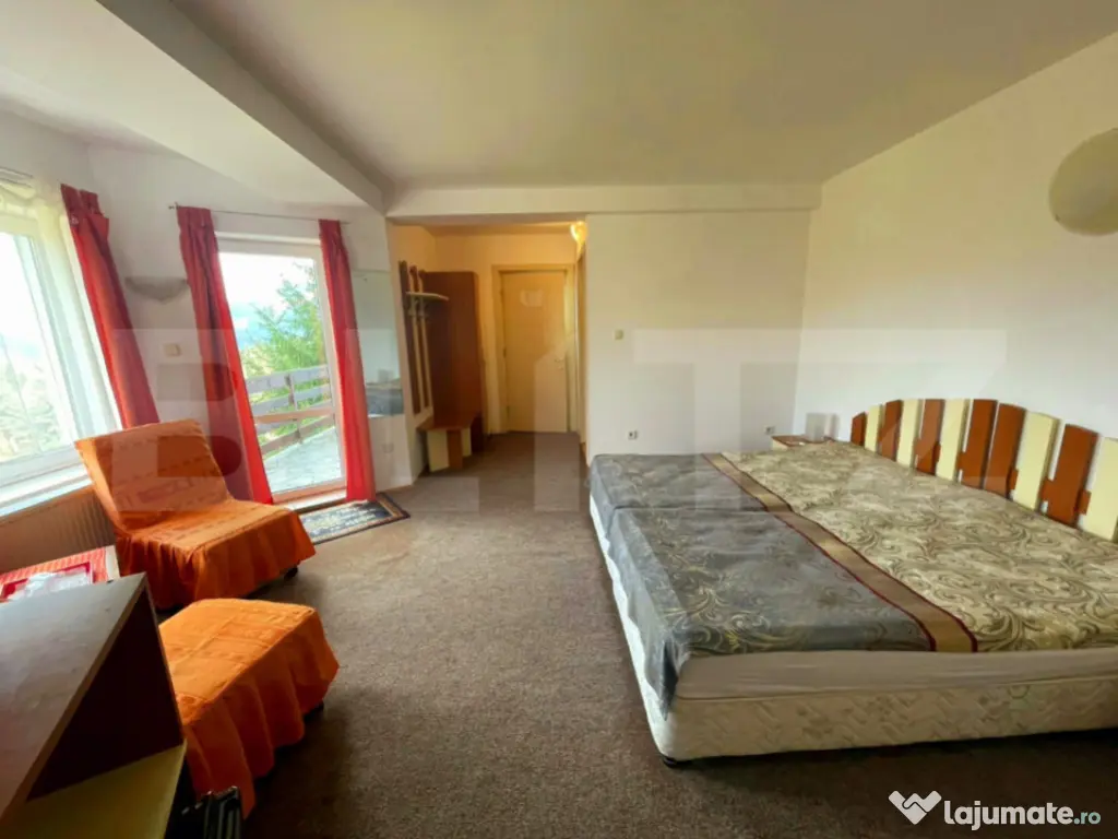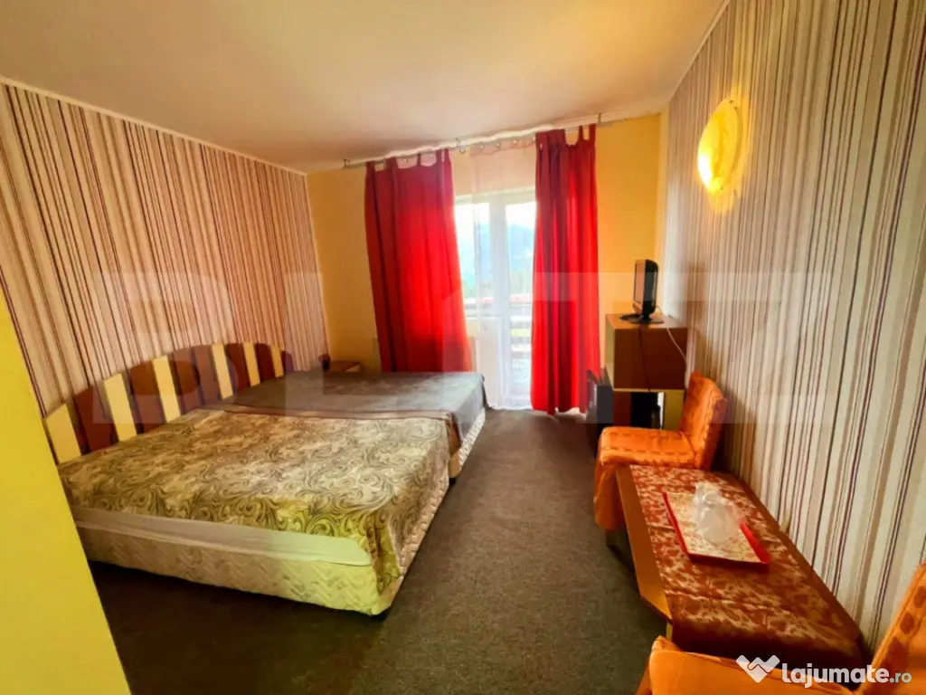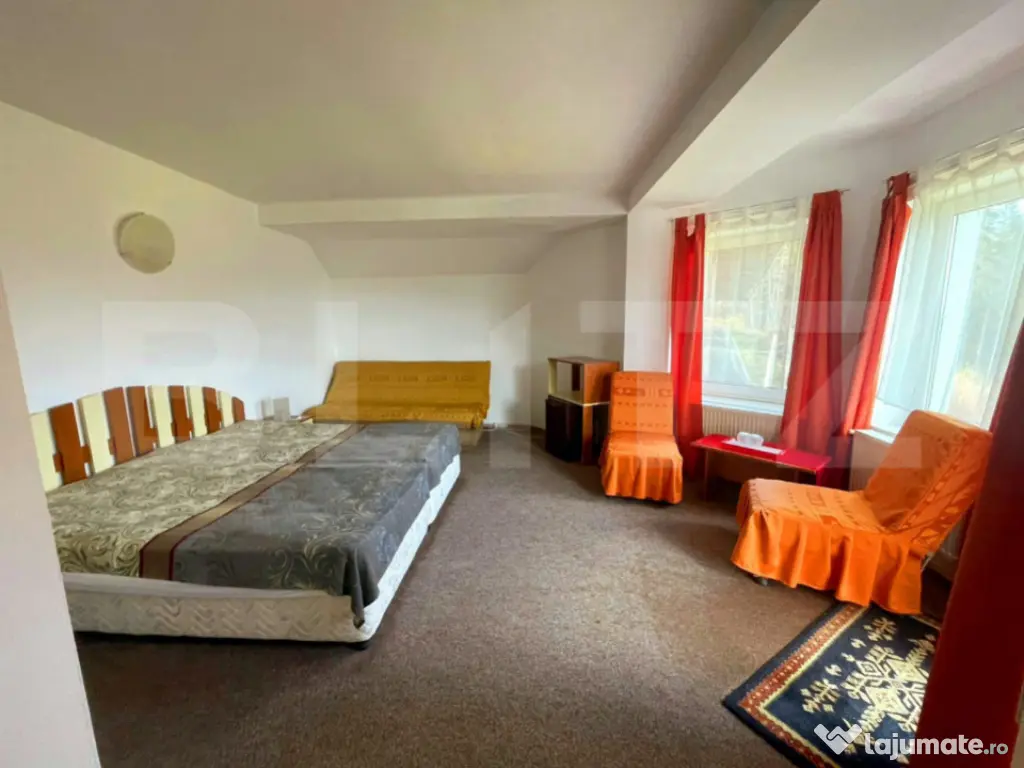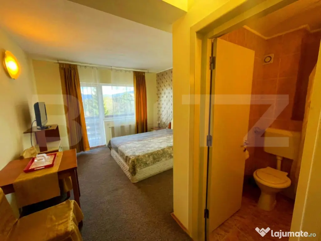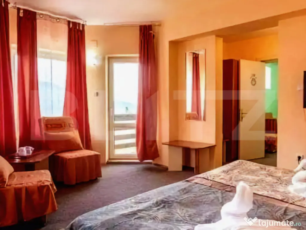 Pensiune de vânzare – 700 mp utili, poziție excelentă pe DN1, ideală pentru relansare sau investiție turistică Se vinde o pensiune cu structură completă și potențial ridicat, amplasată într-o zonă cu vizibilitate maximă, chiar lângă DN1. Proprietatea dispune de o suprafață utilă totală de 700 mp, fiind structurată pe 3 niveluri, cu camere, apartamente, terase, zonă de spa, bucătărie și spații tehnice complet definite. Pensiunea a funcționat până recent, însă nu mai este operațională de aproximativ un an, motiv pentru care reprezintă o oportunitate excelentă pentru investitorii interesați să o repună în circuitul turistic sau să o dezvolte într-un concept nou: hotel boutique, unitate de cazare de 4 stele, centru de evenimente, retreat wellness sau spa. Structură și compartimentare (700 mp utili) Demisol – aprox. 50 mp • Zonă SPA • Cadă presiune înaltă • Saună infraroșu • Spații tehnice / masaj • Grupuri sanitare Parter – 130 mp • Recepție • Cameră personal + grup sanitar • Bucătărie complet echipată • 2 grupuri sanitare • Terasă închisă ~45 mp • Terasă deschisă ~40 mp Etaj 1 – 125 mp • 4 camere duble cu băi proprii și terase • 1 cameră triplă cu baie și terasă • Centrală termică Etaj 2 – 125 mp • 1 cameră dublă • 2 camere triple cu băi proprii și terase • 1 apartament cu baie și terasă • Centrală termică Etaj 3 – 100 mp • 2 apartamente cu băi proprii și terase Mansardă – 50 mp • 1 apartament cu baie proprie ⭐ Avantaje și oportunități • Pensiune complet structurată, cu capacitate 30–40 locuri de cazare • Potențial de extindere (6–8 camere suplimentare) • Poziționare strategică – vizibilitate excelentă la DN1 • Potrivită pentru: ✔ repunere în circuitul turistic ✔ transformare în pensiune boutique / hotel 4★ ✔ retreat wellness / spa ✔ centru de tabere, evenimente, corporate • Multiple terase, zone spa și camere cu terase individuale • Parcare generoasă: 15 locuri, dintre care 5 acoperite O investiție cu adevărat versatilă Fiind deja compartimentată, utilată și concepută ca unitate turistică, pensiunea se poate relansa rapid în circuit cu investiții moderate. Poziția strategică și vizibilitatea ridicată o fac ideală pentru investitorii care caută o proprietate cu potențial imediat de dezvoltare. Cod ofertă / ID BLITZ: P158755 Id intern: P158755 Număr Băi: 16 Nr. locuri parcare: 10-20 Curent Apă Canalizare Gaz