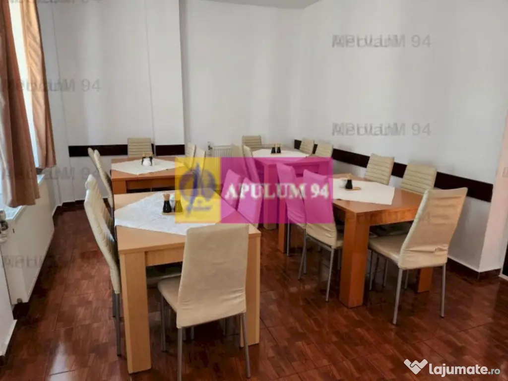 Pensiunea este in Busteni, are regim de inaltime D+P+E+M, suprafata construita de 472 mp si este edificata pe un teren in suprafata de 448 mp. Aceasta este structurata astfel: Demisol: Sala de mese, bucatarie, baie, hol, casa scarii si o terasa exterioara in suprafata de apr 30 mp avand barbeque. Parter: Receptie, 4 camere cu bai proprii, hol si casa scarii; Etaj: 3 camere cu bai proprii, 2 balcoane, living cu bucatarie open space, hol si casa scarii; Mansarda: 4 camere cu bai proprii. Imobilul se afla intr-o zona deosebita, beneficiind de o priveliste superba catre munti. De asemenea, dispune de un portofoliu bogat de clienti fideli, reprezentand varianta ideala pentru un business in domeniul turistic, avand clasificare de 3 stele Suprafaţă totală: 472 m² An finalizare construcție: 2010 Vitrină: 15.0 m Stadiu construcţie: Finalizat Număr încăperi: 13 Număr Grupuri Sanitare: 12 Posibilitate parcare: Nu Tip imobil: Casă/Vilă
