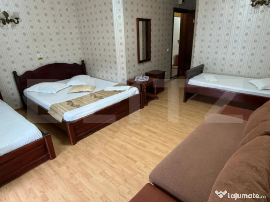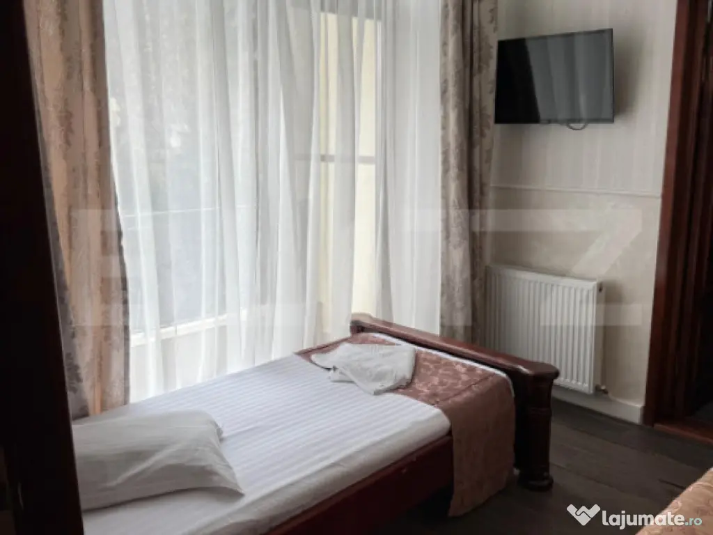 BLITZ va propune spre vanzare pensiune în Predeal – investiție turistică excelentă Vă prezentăm spre vânzare o pensiune complet funcțională, situată într-o zonă foarte bună din Predeal, în apropiere de pârtia de schi și gara Predeal, ideală atât pentru turiști, cât și pentru investiție pe termen lung. Proprietatea este structurată în două corpuri de clădire și dispune de: 15 camere spațioase, fiecare cu baie proprie și balcon 15 băi complet echipate Restaurant cu capacitate de 70 de locuri, ideal pentru mic dejun, evenimente sau grupuri organizate Saună și jacuzzi, pentru relaxarea oaspeților Lift, care asigură acces facil către toate nivelurile Aer condiționat Wi-Fi în întreaga proprietate Parcare proprie, un avantaj important în zona montană Pensiunea este amplasată într-o zonă cu acces rapid către principalele puncte de interes din Predeal, beneficiind de vizibilitate și atractivitate turistică pe tot parcursul anului. Imobilul se vinde complet echipat și mobilat, fiind gata pentru preluare imediată și exploatare. Ideală pentru investitori care doresc o afacere la cheie într-una dintre cele mai căutate stațiuni montane din România. Cod ofertă / ID BLITZ: P160751 Id intern: P160751 Stadiu construcţie: Finalizat Număr încăperi: 15