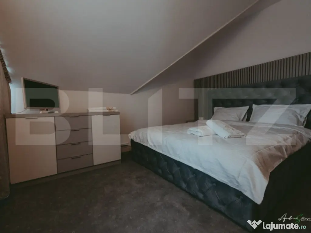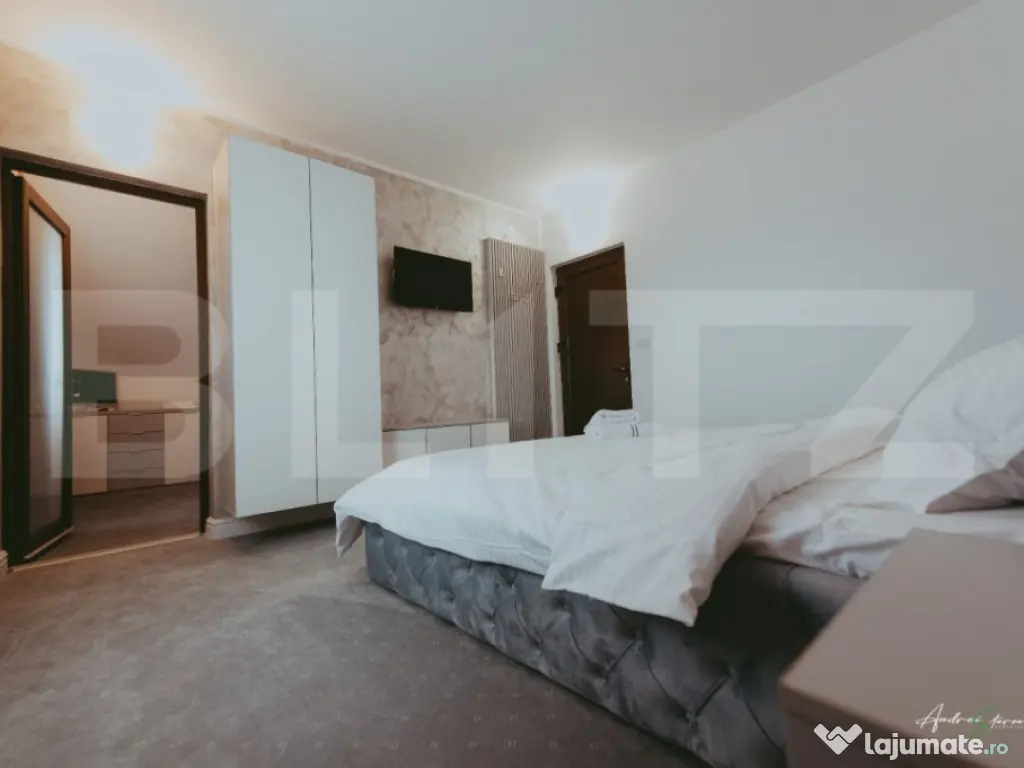 BLITZ va prezinta o pensiune superbă, finalizată și finisată cu atenție la detalii, situată într-o zonă strategică din stațiunea montană Rânca, ideală pentru activități turistice pe tot parcursul anului. Proprietatea impresionează atât prin amplasare, cât și prin calitatea construcției și a dotărilor. Are o suprafață totală desfășurată de 900 mp, construită pe un teren intravilan de 900 mp( aflat în concesiune pentru o perioadă de 49 de ani). Compartimentarea este eficientă și adaptată cerințelor turismului modern si cuprinde: 11 camere duble, fiecare cu baie proprie; 2 apartamente cu câte două camere, ideale pentru familii; Restaurant generos, cu o capacitate de aproximativ 120 de persoane plus terasă inchisa, spațioasă de 45 mp, perfectă pentru relaxare și servirea mesei în aer liber; Un total de 14 încăperi, dispuse pe demisol, parter și două etaje. Pensiunea este complet finisată, cu materiale de calitate superioară, având un design funcțional și atrăgător. Atmosfera caldă și primitoare, alături de poziția avantajoasă față de pârtiile de schi și traseele montane, o transformă într-o alegere ideală pentru exploatare imediată. Constructia este desigur edifcata cu simtul rapsunderii respectand standardele calitative si dispune de toate utilitatiile necesare buneio activitati a pensiunii Aceasta este o investiție solidă într-o zonă cu potențial turistic ridicat, pregătită să primească oaspeți fără a necesita lucrări suplimentare asa ca va asteptam cu mai multe detalii la vizionare! --- Cod ofertă / ID BLITZ: P144626 Id intern: P144626 Stadiu construcţie: Finalizat Număr încăperi: 14