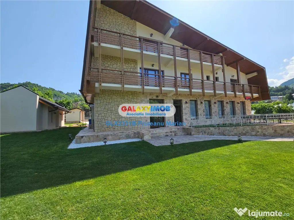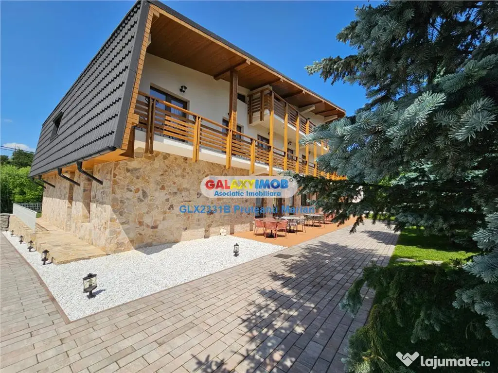 Oferta comision 0. Oferta Exclusiva. Avem cheile proprietatii. GalaxyImob va prezinta spre vanzare o Pensiune eleganta, proiectata cu viziune moderna si stil practic care este situata in zona de munte in apropriere de Pestera Dambovicioara! Imobilul a fost edificat in 2004 pe un teren de 4000 mp, beneficiaza de zona de agrement, cu gazon si aspresoare, iar locurile de parcare sunt situate in partea din fata a complexului. Pensiunea este structurata P 1 M, cu zone de relaxare: salon pentru servit masa si (sitting cheminee), terasa exterioara/ interioara, zona de barbeque, bucatrie de vara, teren de tenis / fotbal cu nocturna si sala de asteptare, iar grupurile sanitare exterioare sunt de o eleganta in stil opulent. Designul exterior te atrage prin eleganta, iar in interior descoperi un camin spatios prevazut cu numeroase zone pentru petrecerea timpului in familie. Calitatea este cuvantul ce caracterizeaza aceasta proprietate, pornind de la detaliile constructive pana la finisajele interioare si exterioare. Pensiunea dispune de unsprezece camere, avand o suprafata utila de 760 mp iar spatiul interior a fost compartimentat eficient astfel incat, intreaga suprafata sa fie utilizata, dar in acelasi timp sa inspire eleganta, stil, confort si libertate de miscare. Parterul imbina elegant zona de living si cea de dining cu zona de recreere(sitting cheminee), grupuri sanitare vizualizate in stil autentic zonei, bucatarie ultra moderna, echipata la gata cu necesarul pentru utilitate, receptia a fost proiectata si iluminata in concept Hotelier, iar accesul spre gradina si terasa acoperita se face cu iesire din sala Restaurantului, apoi dispune un birou, o camara, bucataria inchisa, complet mobilata si echipata cu electrocasnice, grup sanitar, camera tehnica. Utilitati: apa, canal (cu statie de pompare), gaze, enel. La etajul 1 se numara noua camere moderne cu autentic zonei pozitionate pe partea din fata si din spate a pensiunii avand iesire din fiecare camera catre balcon cu zona de recreere. Vizualizam in vecinatate o panorama superba cu paduri si dealuri in vecinatatea (pesterei Dambovicioara). La etajul 2: se numara un apartament matrimonial si o garsoniera spatioasa, ambele cu iesiri separate catre balcon in stil terasa! Pensiunea fost recent renovata in urma cu aproximativ doi ani. Pentru a descoperi farmecul acestei proprietati unice in zona, scaldate in lumina naturala care patrunde prin suprafetele vitrate generoase, cele 11 camere ale PENSIUNII se desfasoara pe o suprafata construita de 970 mp, iar spatiul interior a fost compartimentat eficient astfel incat intreaga suprafata sa inspire confort si stare de bine! Noaptea, interiorul vilei, dar si gradina sunt feeric luminate printr-o retea fina de spoturi si candelabre si nocturna ce creaza o stare de relaxare si liniste! Pentru a descoperi magia unei proprietati unice, va invit la vizionare! Pretul va fi comunicat la cerere. ATENTIE: PENSIUNEA DE LUX SA TRANZACTIONAT DE CURAND. ACEST ANUNT ESTE DOAR DE PREZENTARE! Informatii eficienta energetica: Clasa energetica: A Consumul de energie primara: Indicele de emisii echivalent CO2: Consum de energie din surse regenerabile: An finalizare construcție: 2005 Stadiu construcţie: Finalizat